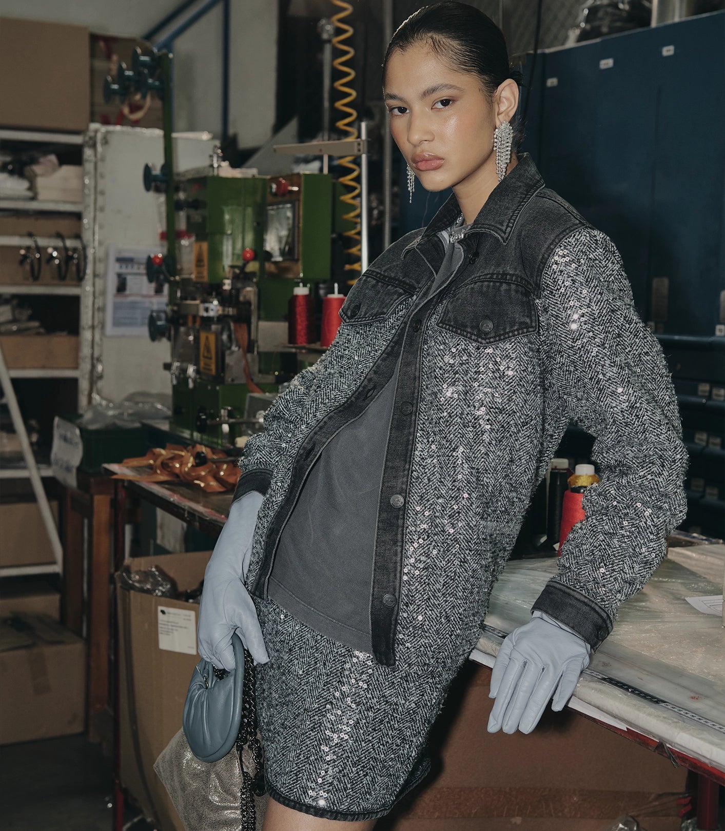 Superposición de capas, juegos de textura, siluetas que conversan entre sí y accesorios que sellan la intención del look.