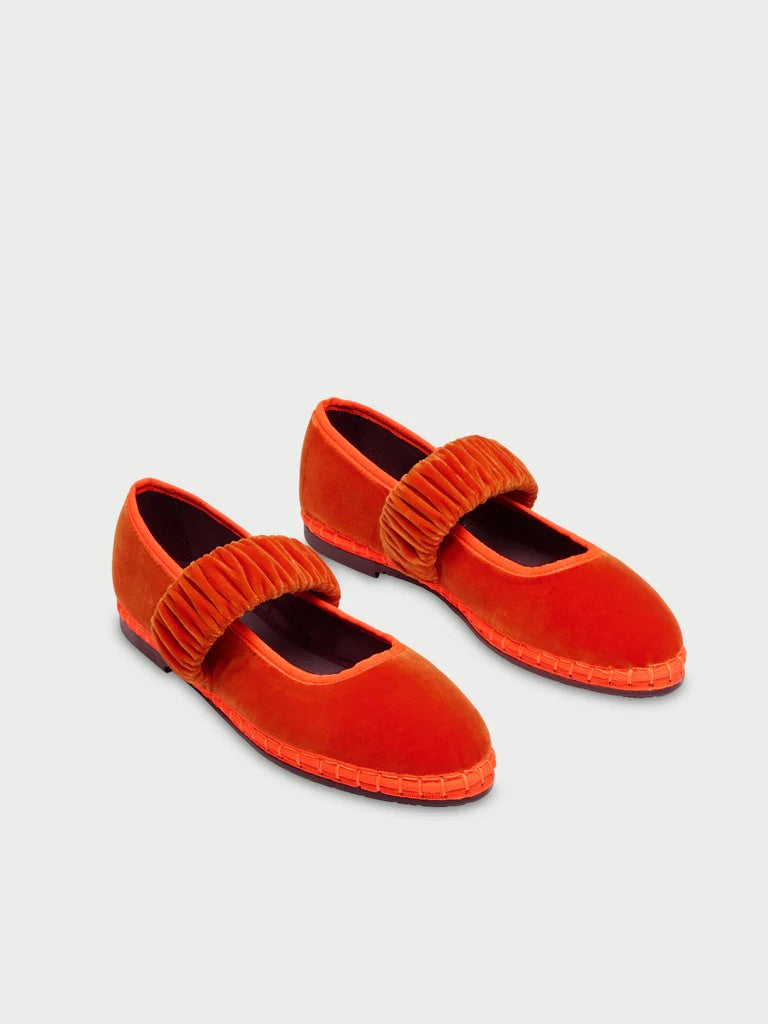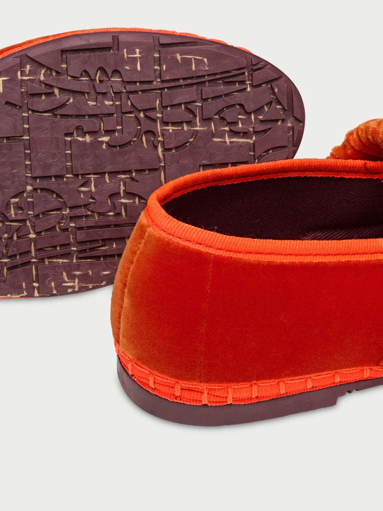 Mafalda de terciopelo en color naranja con ribete naranja y encaje de terciopelo naranja.