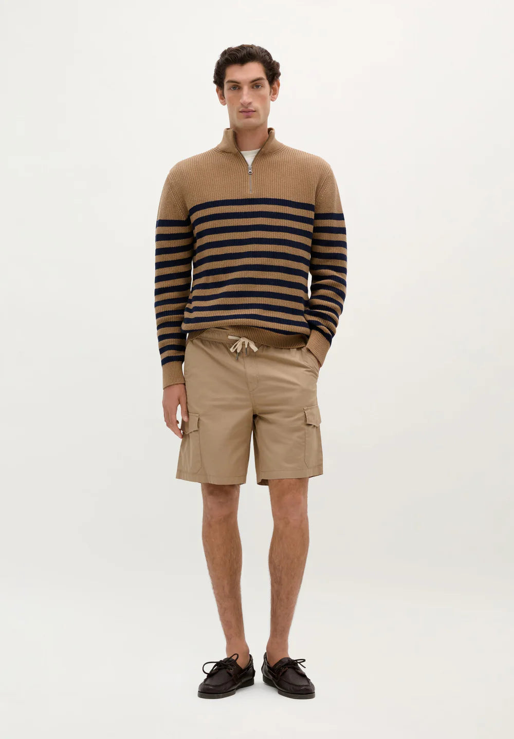 Bermuda cargo. Confeccionada en algodón orgánico. Corte Regular fit. Cierre con botón y cremallera. Bolsillos laterales. Bolsillos en pernera de parche con solapa y cierre con snaps. Bolsillos trasero de parche. Trabillas en cintura. Detalle de calavera bordada a tono.