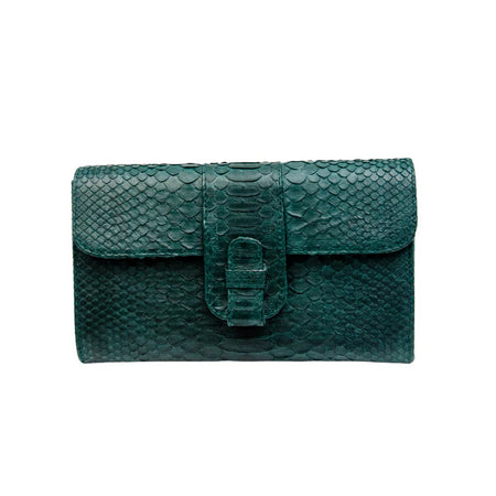 Esta billetera viene con una correa opcional. Detallado con cierre magnético oculto y bolsillo interior deslizante. Fabricado en Italia a partir de Python de origen responsable.