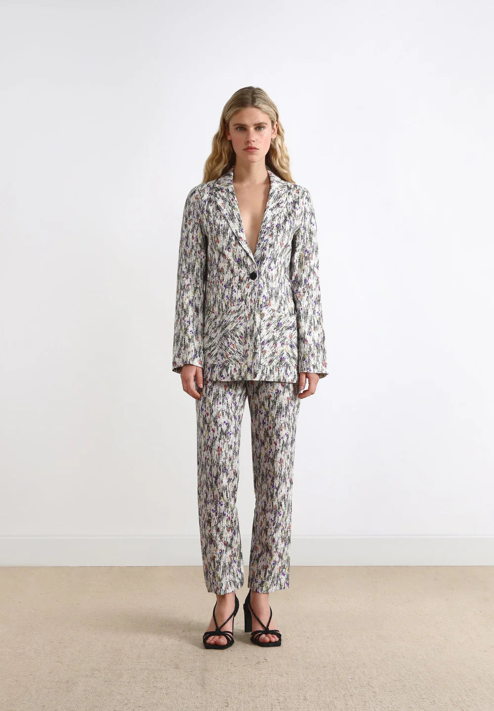 Blazer de lino con tejido multicolor.