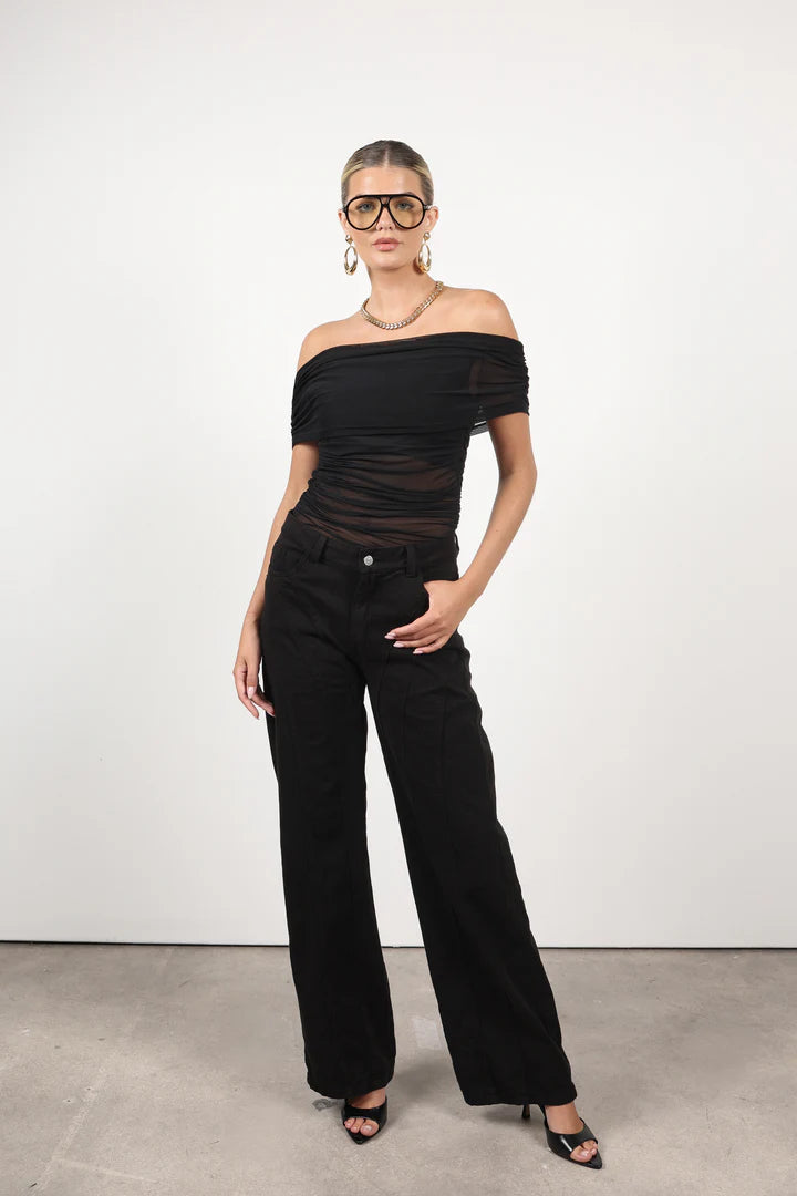 Minimalista pero sofisticado, este body de malla de alta calidad se adapta perfectamente a tu silueta, realzando tu figura con sutil elegancia. Su escote con hombros descubiertos y mangas fruncidas le dan un toque femenino y chic, convirtiéndolo en un imprescindible en el armario de cualquier chica moderna.