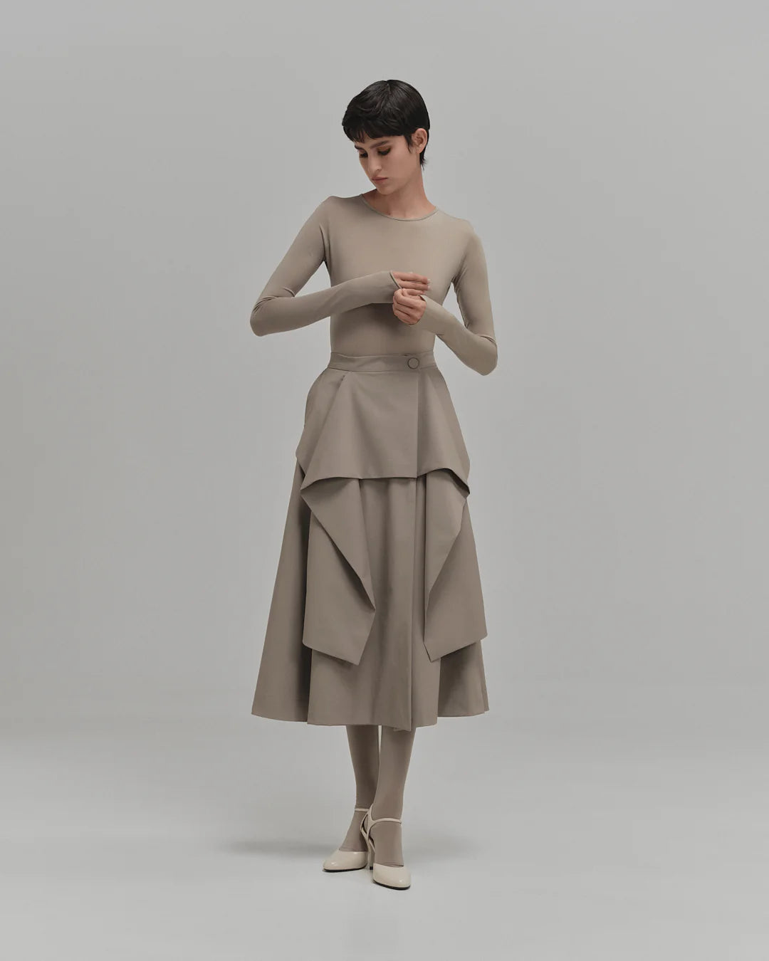 El mono de punto Trazo se ajusta como una segunda piel con una silueta limpia y minimalista que se adapta a la perfección a tus movimientos. Con mangas largas y puños sutilmente fruncidos, es la prenda básica perfecta: llévala debajo de un traje o combínala con pantalones llamativos para un look elegante y moderno.