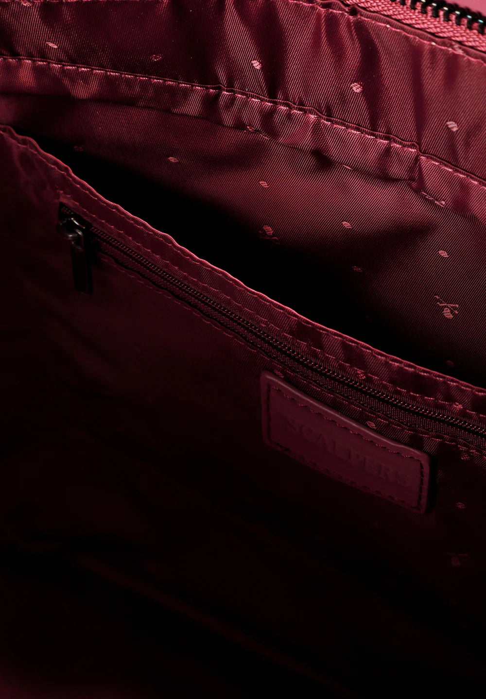 Bolso shopper confeccionado en piel sintética. Forro interior con doble bolsillo, uno con cremallera. Cierre con cremallera. Asa de hombro. Detalle de cadena y logo metalizado en la parte frontal.