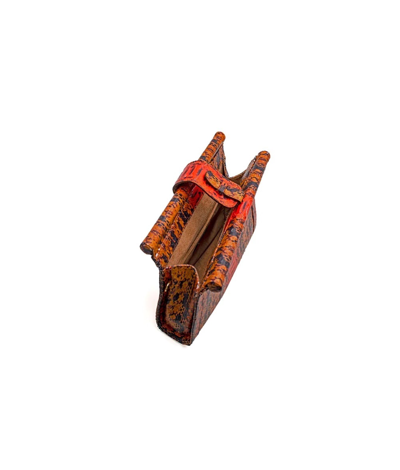 Este clutch/bolso cruzado de cuero con efecto de serpiente tiene un cierre magnético oculto y un bolsillo interior abierto, un bolsillo para celular y una ranura abierta. Viene con una correa de hombro opcional. Hecho en Italia con cuero de origen responsable.