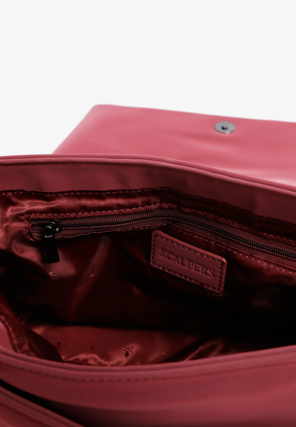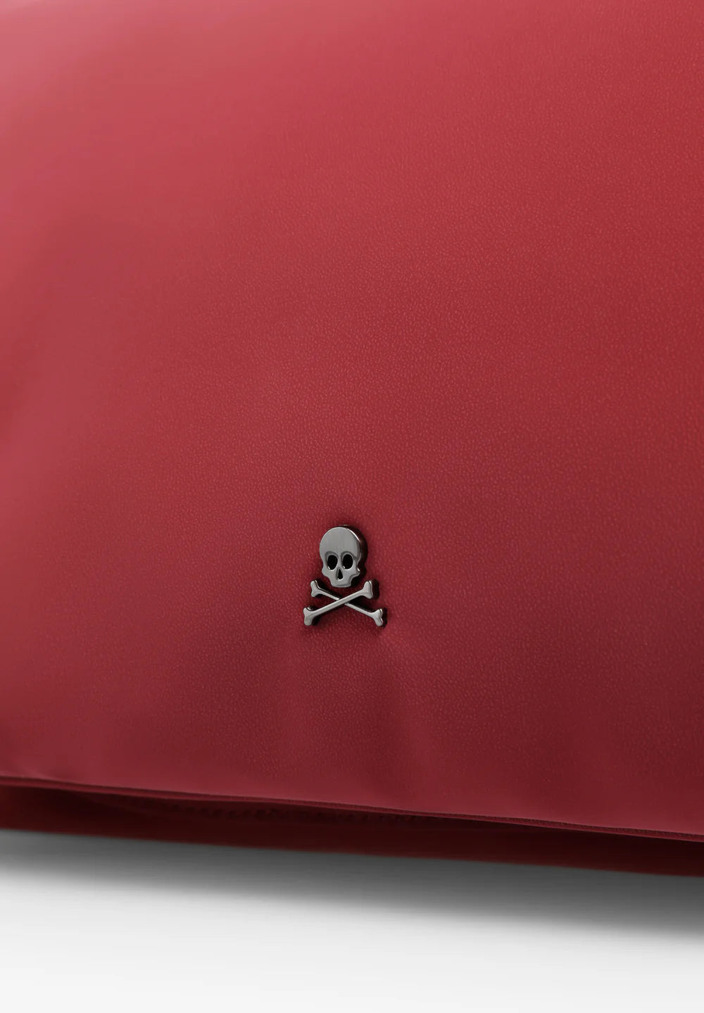 Bolso confeccionado en PU. Cierre con botón imantado. Asa corta trenzada con detalles metalizados y asa larga regulable. Parche metalizado con calavera frontal. Forro interior y bolsillo con cierre mediante cremallera y detalle de logo.