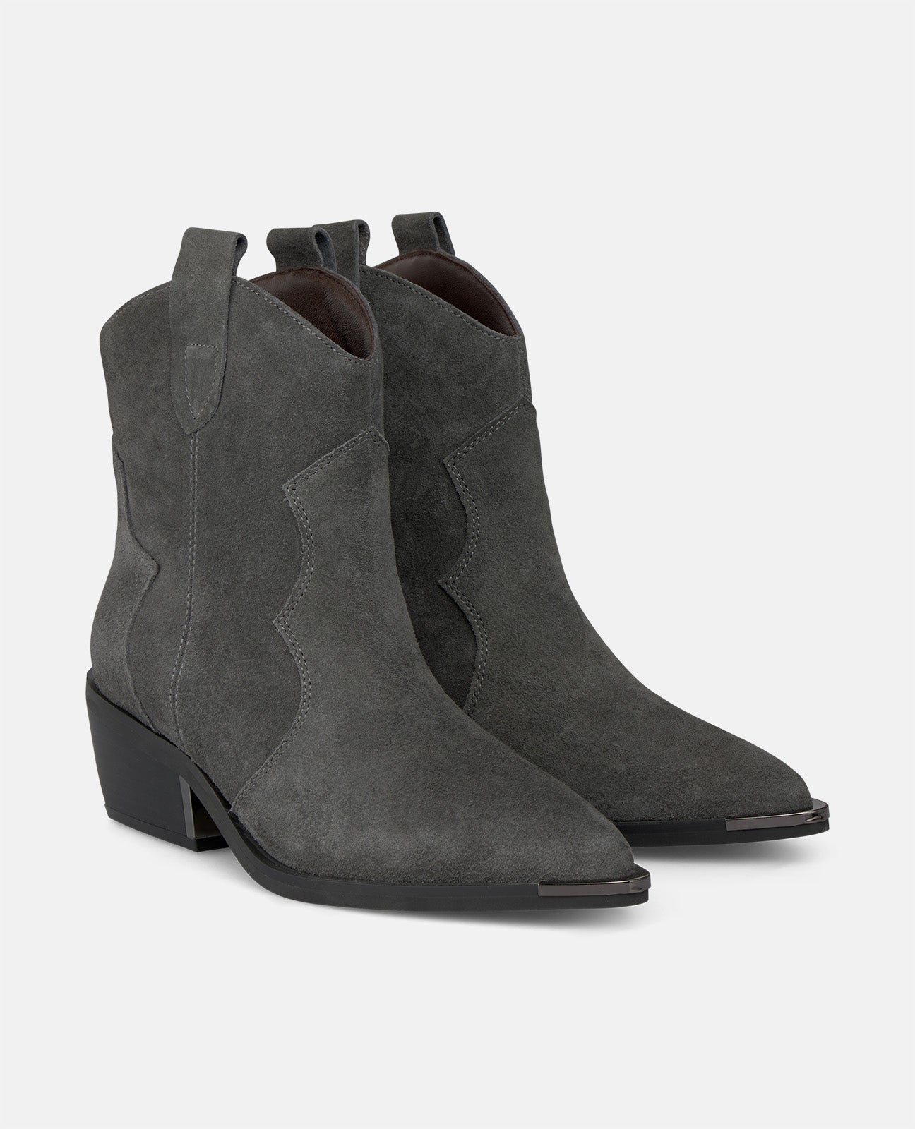 Botín plano para mujer. Con puntera afilada y tacón ancho, sin cierre. La altura del tacón es de 4,5cm y la caña mide 14cm.