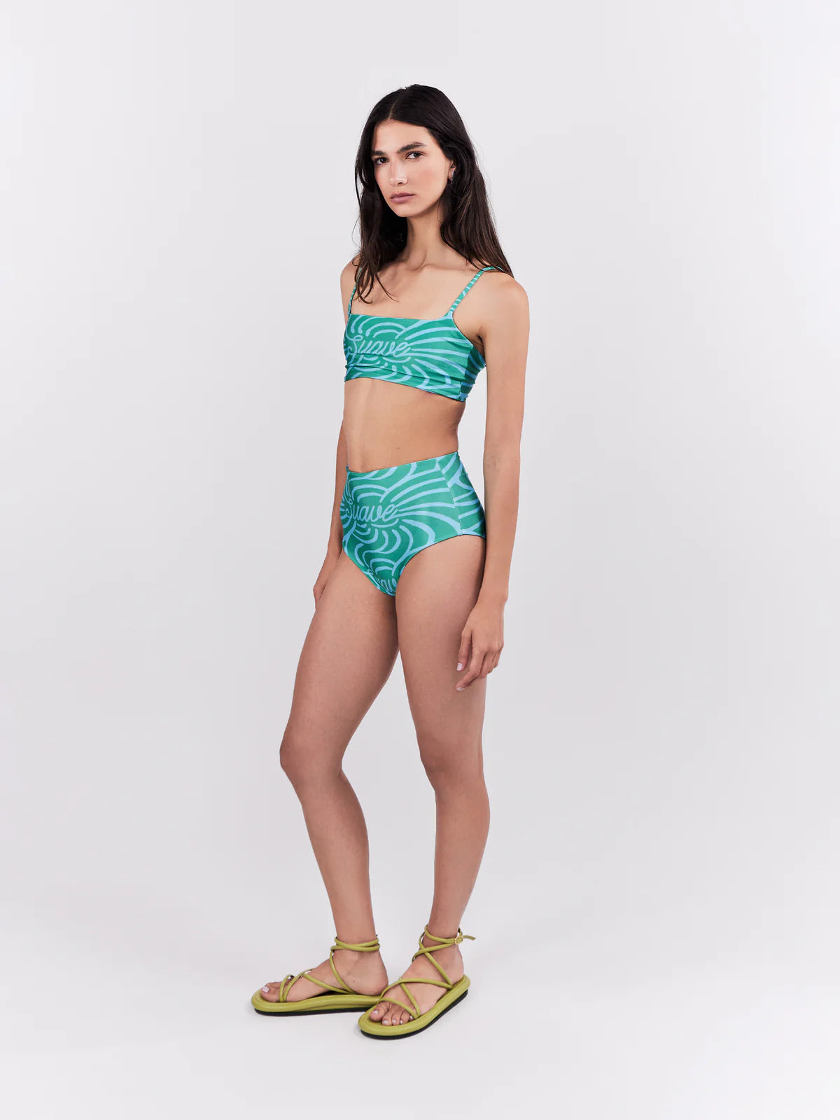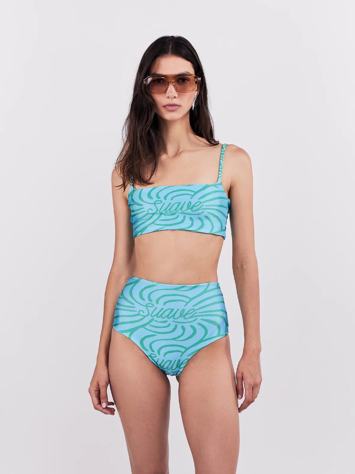 Silueta de cintura alta con piernas de corte alto. Esta pieza fue elaborada con poliéster reciclado. Protección solar hasta UPF 50.