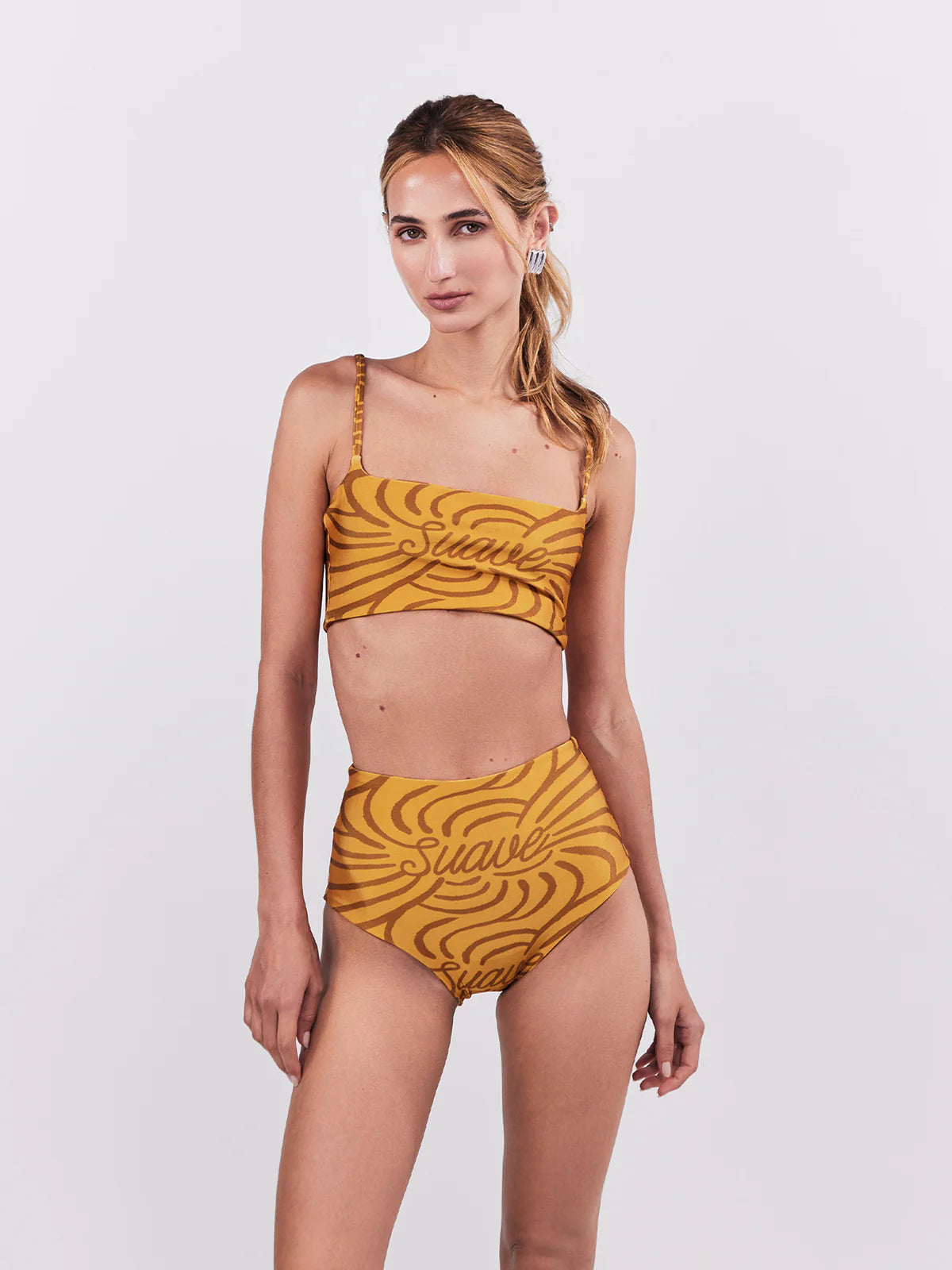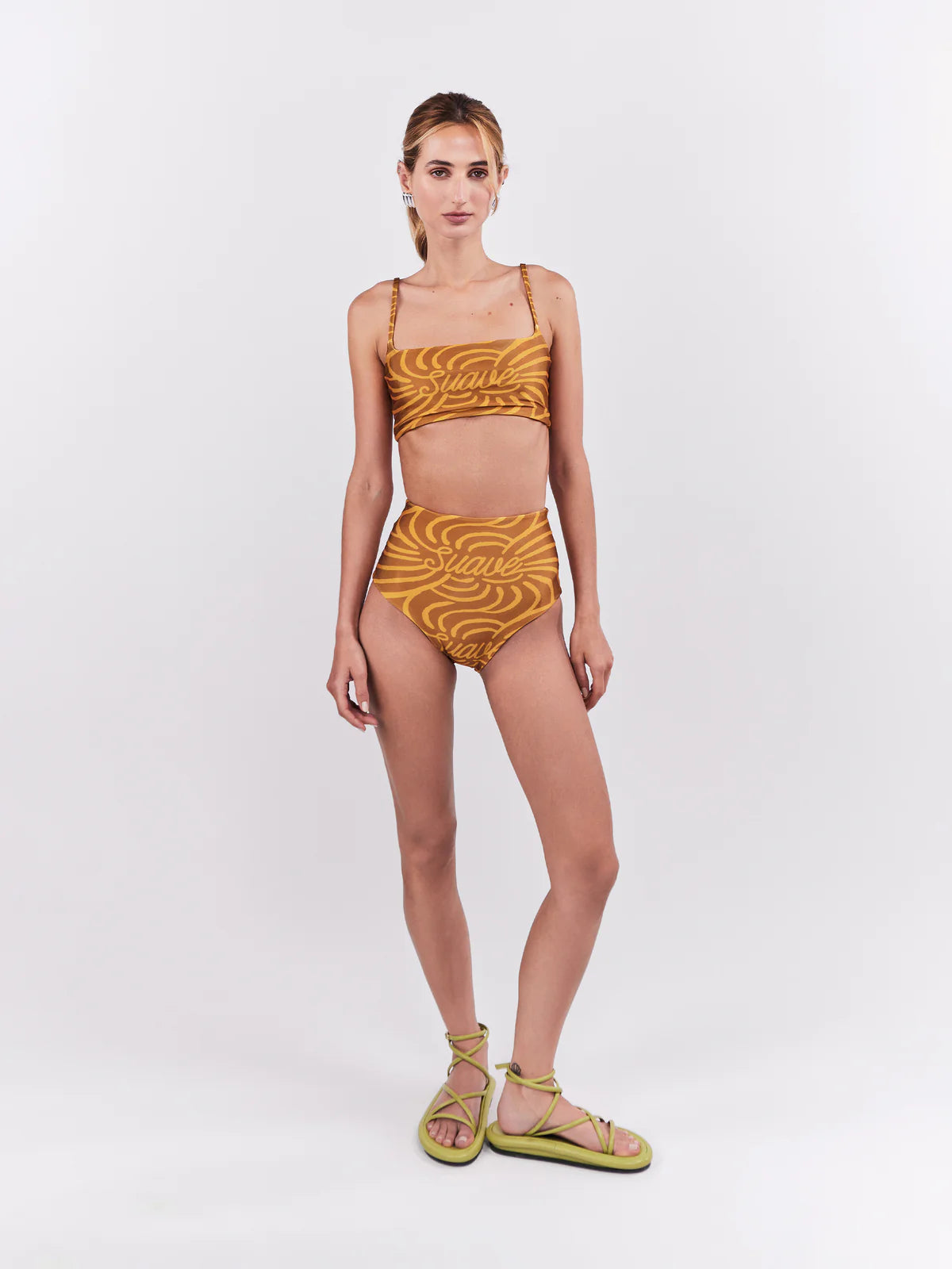 Silueta de cintura alta con piernas de corte alto. Esta pieza fue elaborada con poliéster reciclado. Protección solar hasta UPF 50.