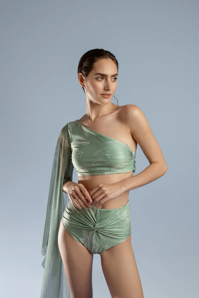 El panty de bikini Danse de Venus es una silueta femenina de talle alto con detalle de nudo delantero.