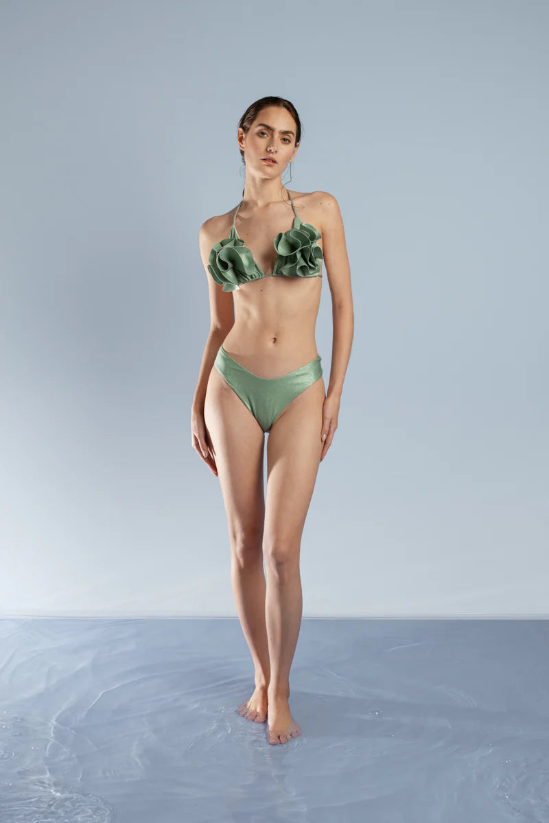 El panty de bikini Floreale combina una silueta femenina de tiro bajo con un corte de pierna alto y un ajuste impecable