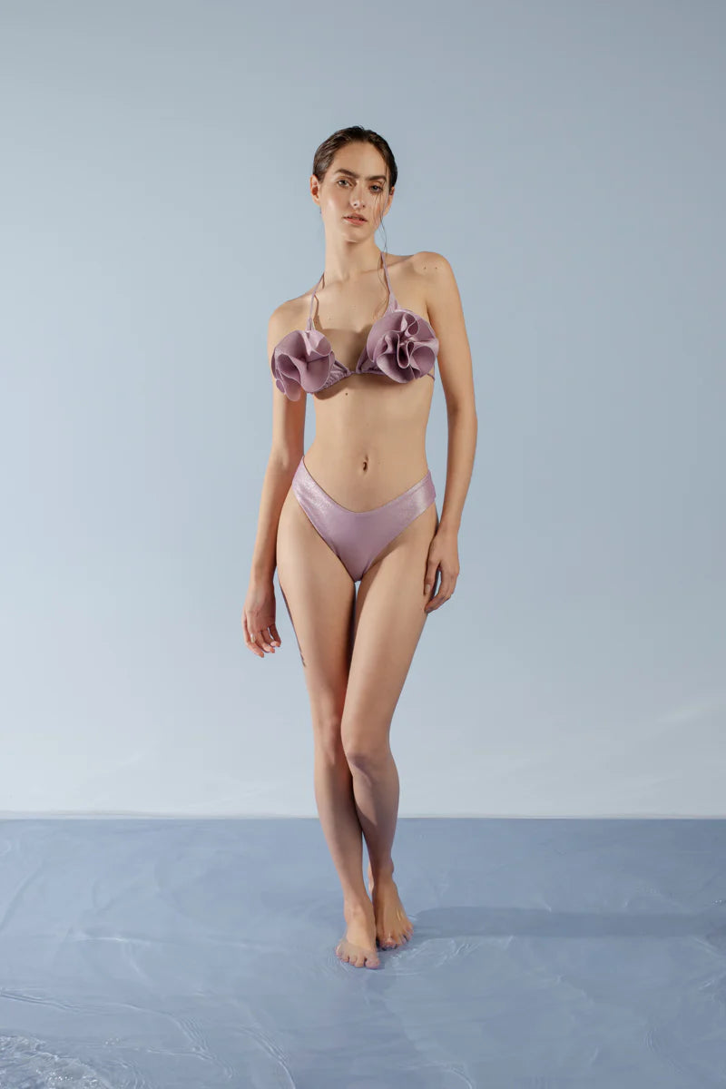 El panty de bikini Floreale combina una silueta femenina de tiro bajo con un corte de pierna alto y un ajuste impecable
