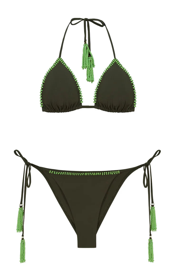Nuestra braguita Lush tiene un diseño de cuentas con lazos laterales y borlas a juego. Está confeccionada en un tejido suave y elástico. Es ajustable para un ajuste perfecto. Es una braguita de bikini imprescindible para todas. Mantener alejada de superficies ásperas. Hecha en Colombia.