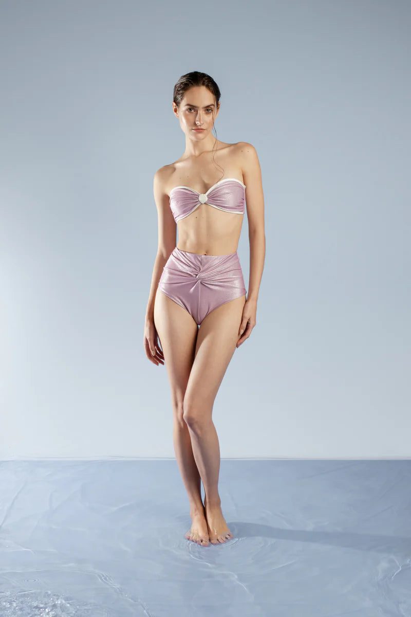 El Panty Miel de Perla high waisted ofrece una silueta cómoda y sofisticada. El detalle de nudo central y la tela brillante lo convierte en una pieza única y llamativa.