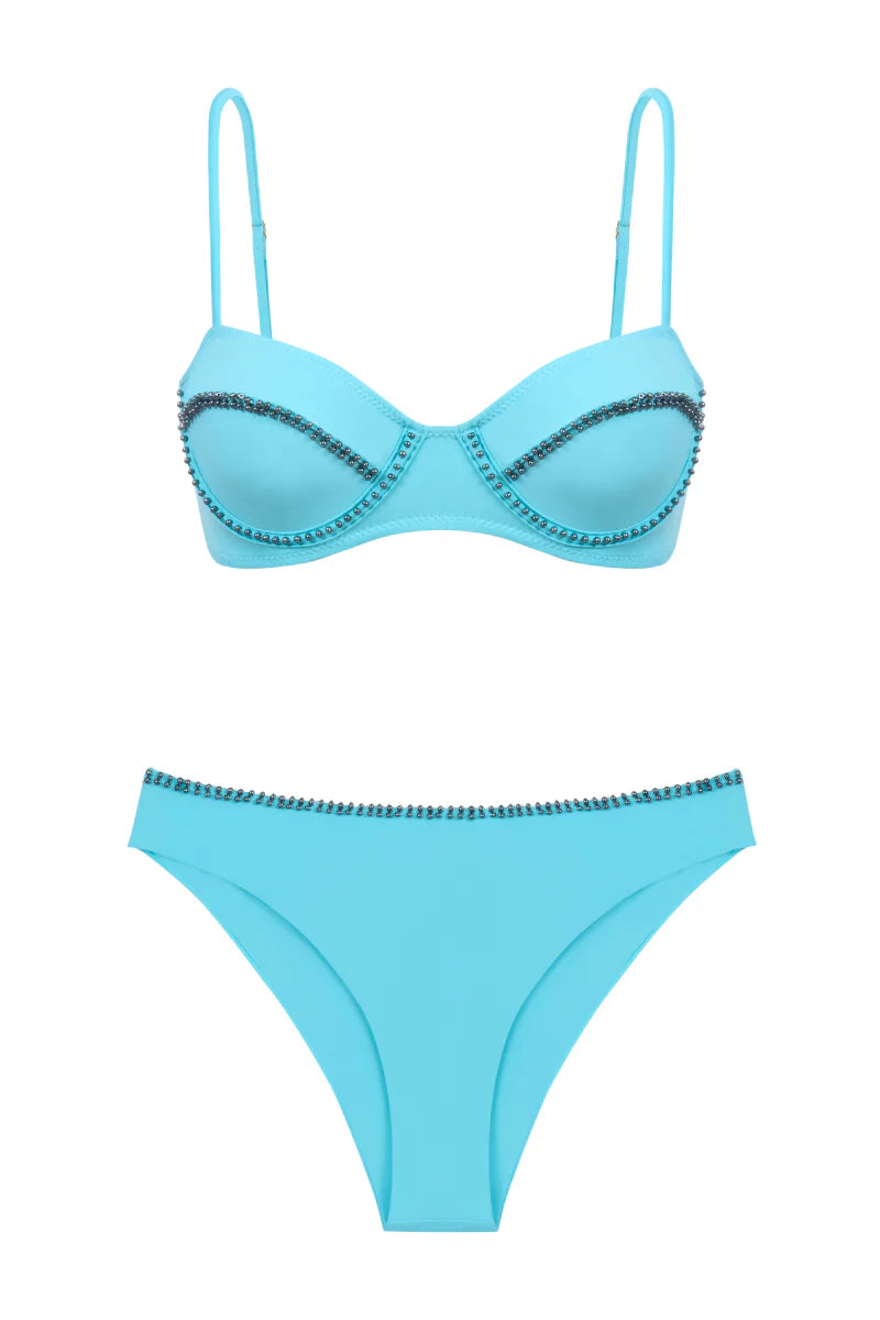 Nuestra braguita Ona es una braguita clásica de cobertura moderada. Su tela es suave y elástica. Presenta un adorno de doble hilera hecho a mano en la cintura. Hecha en Colombia.