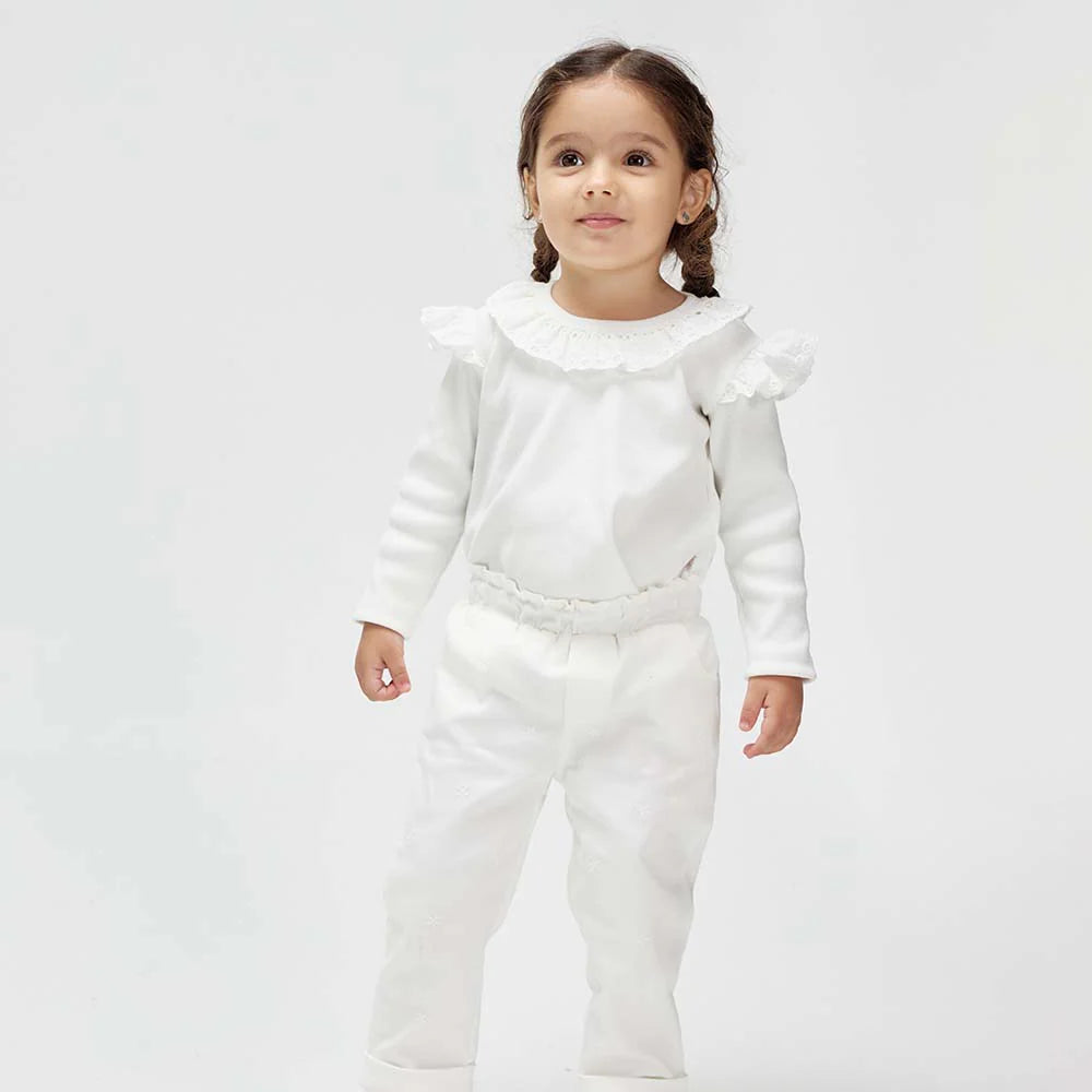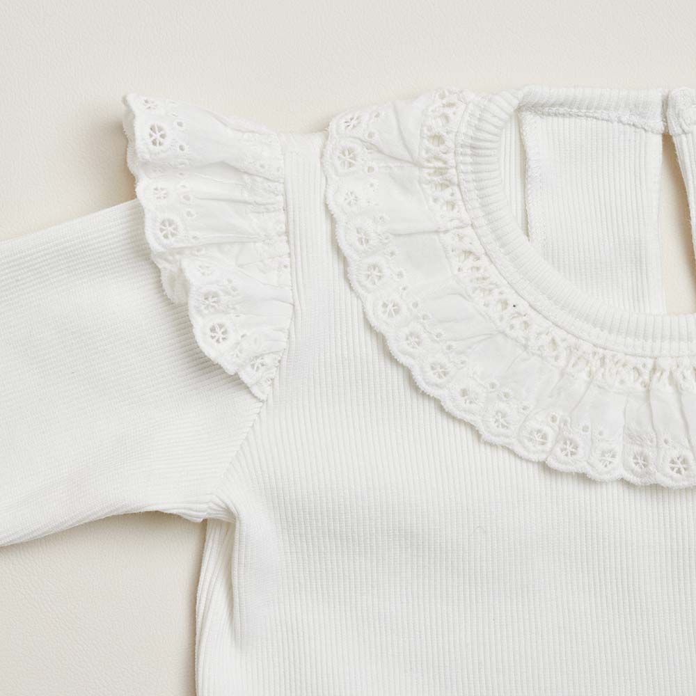 Camibuzo manga larga elaborado en rib, con un hermoso detalle de guipiure en forma de bolero en cuello y mangas. Ideal para combinar con nuestro Pantalón margarita.