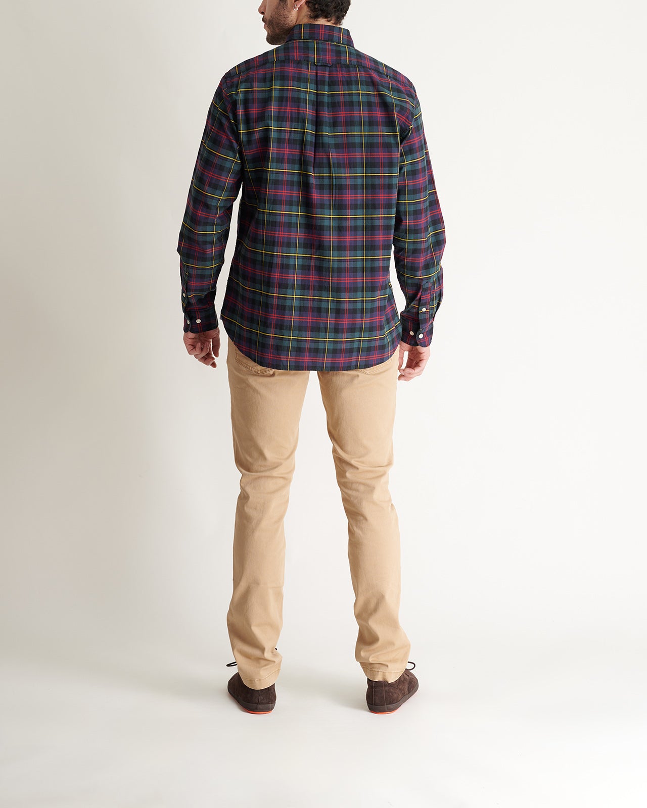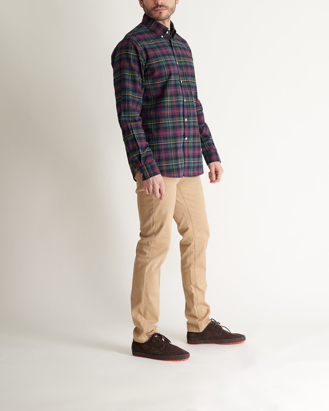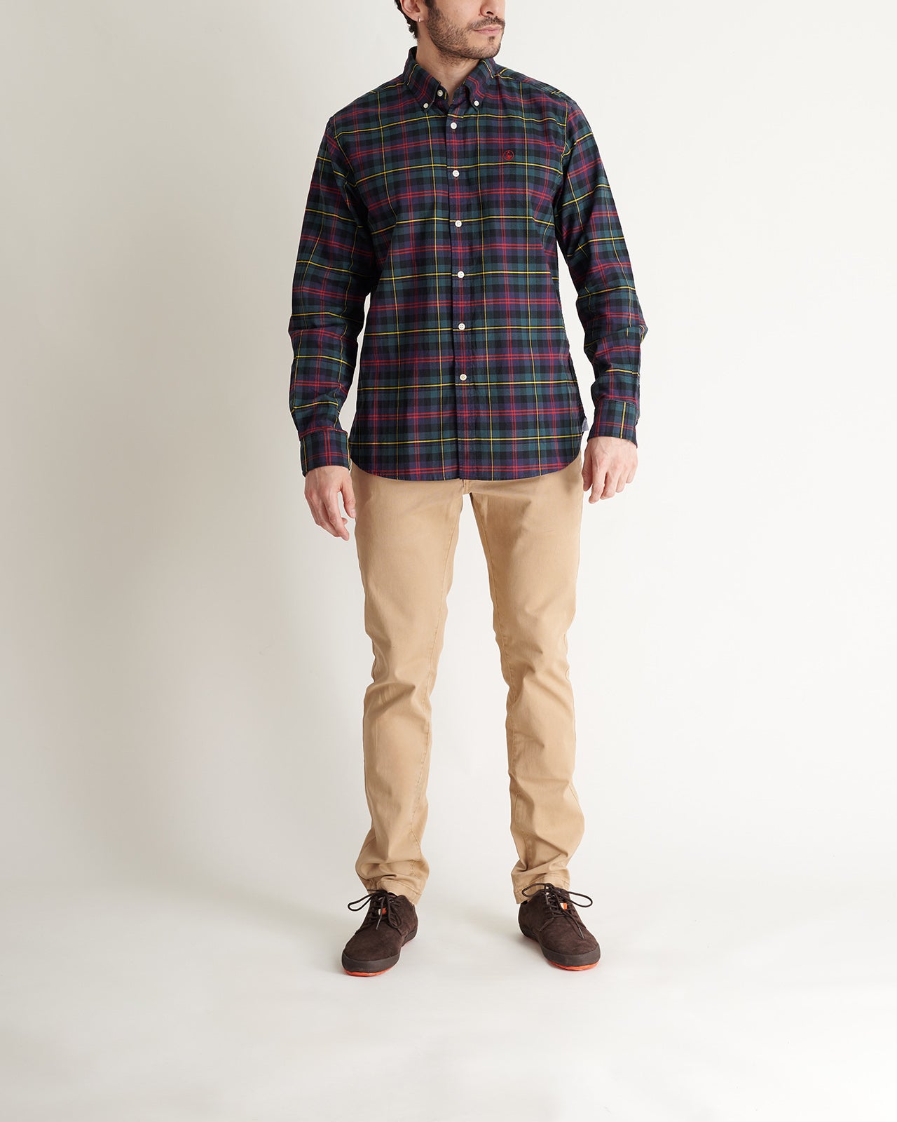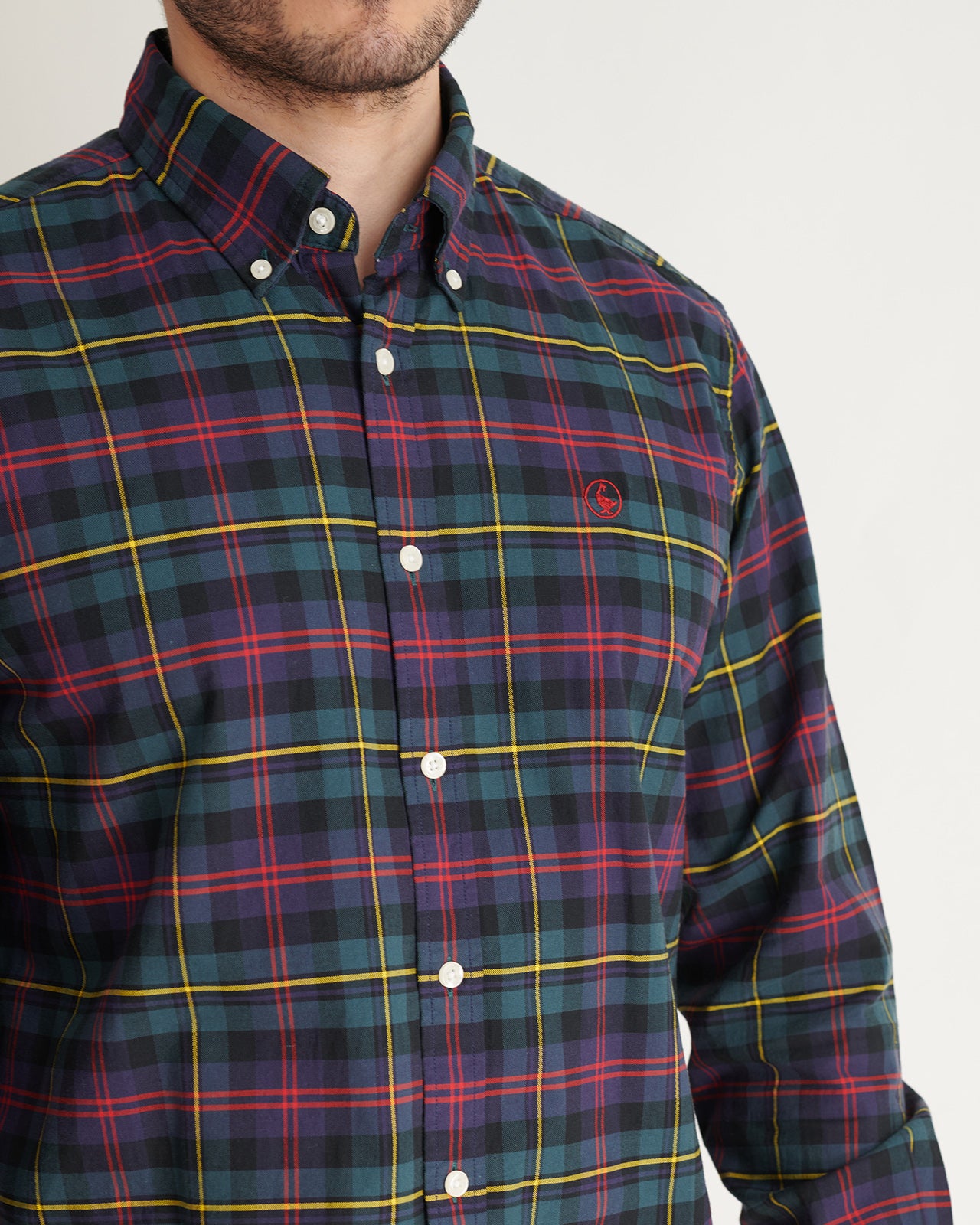 Camisa de hombre de cuadros confeccionada con un tejido, corte regular fit, cuello button down y cierre con botones y tapeta.