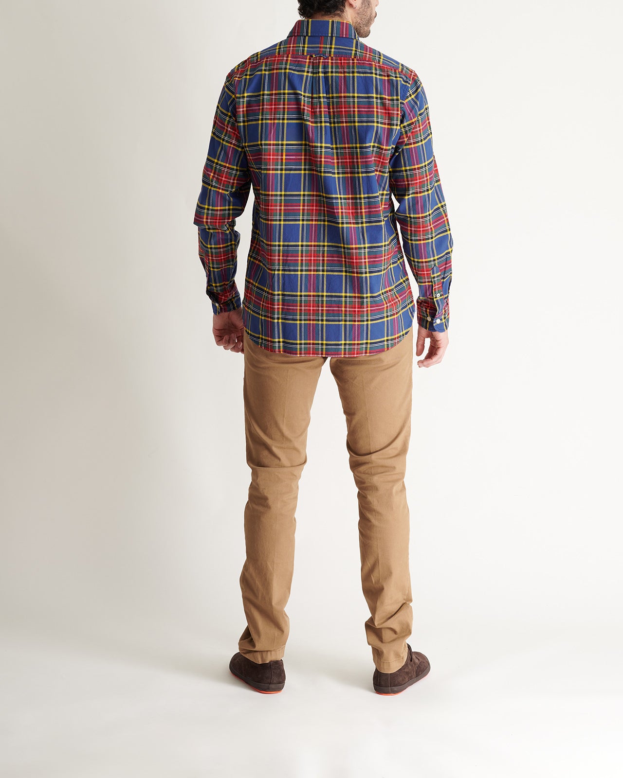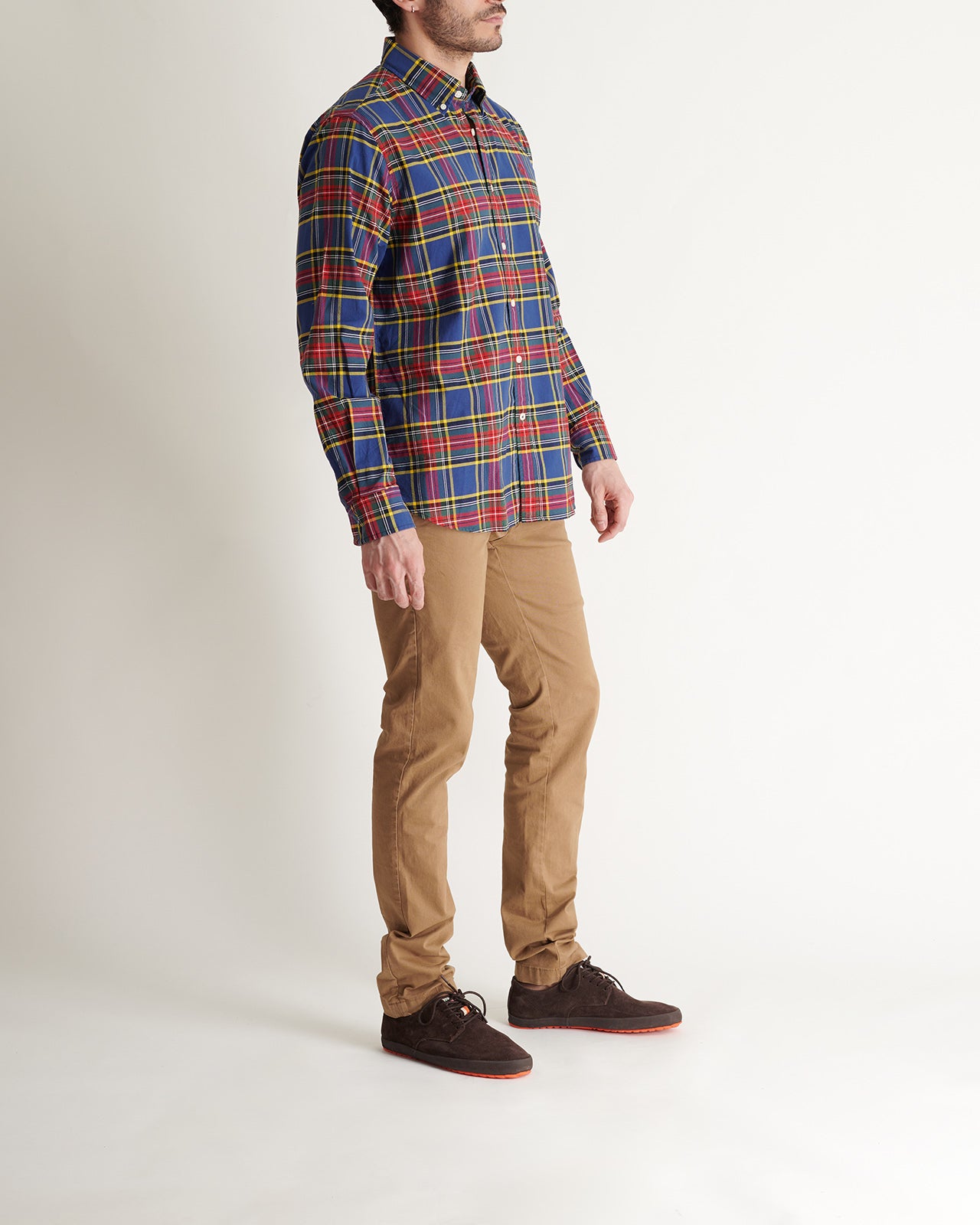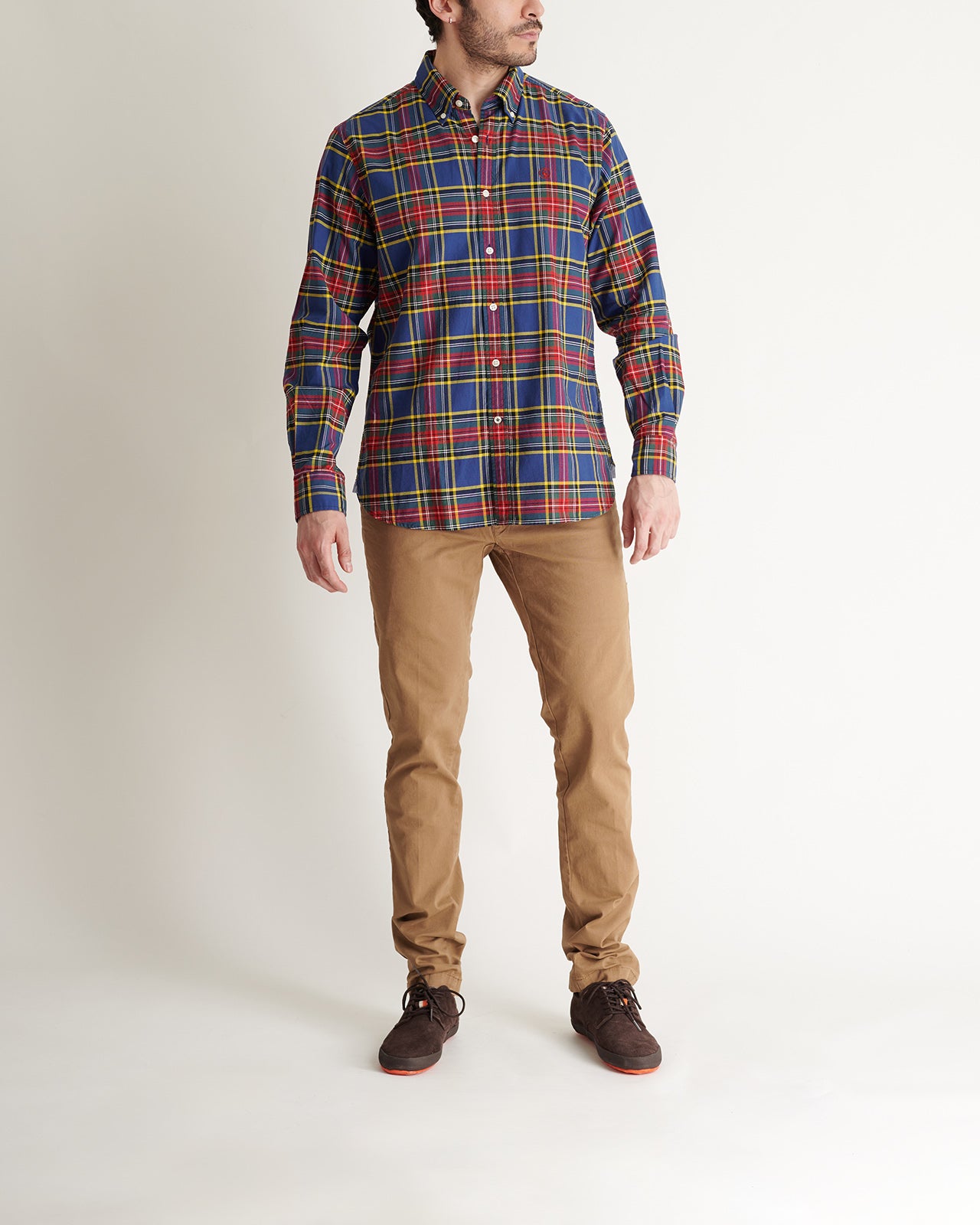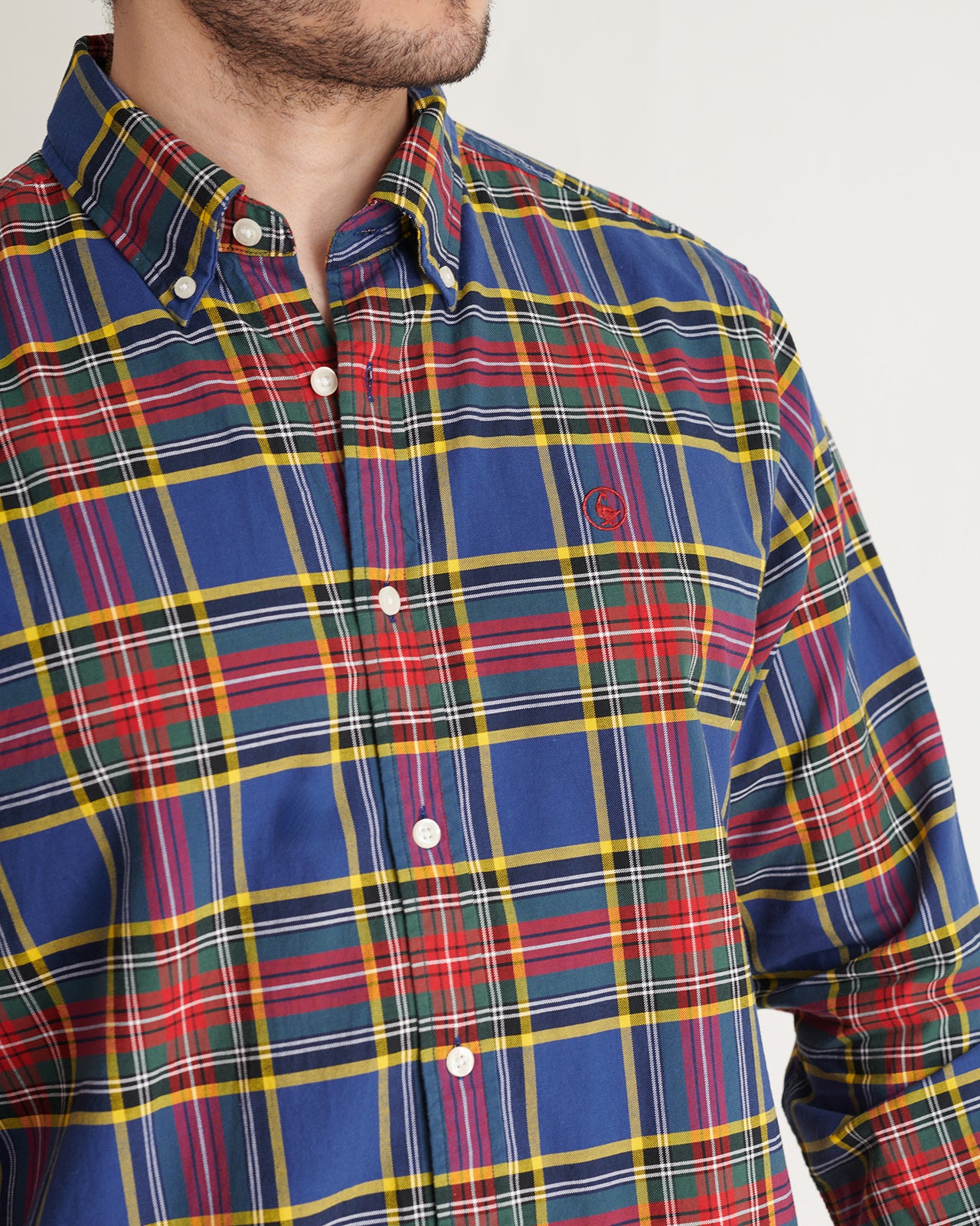 Camisa de hombre de cuadros confeccionada con un tejido, corte regular fit, cuello button down y cierre con botones y tapeta.
