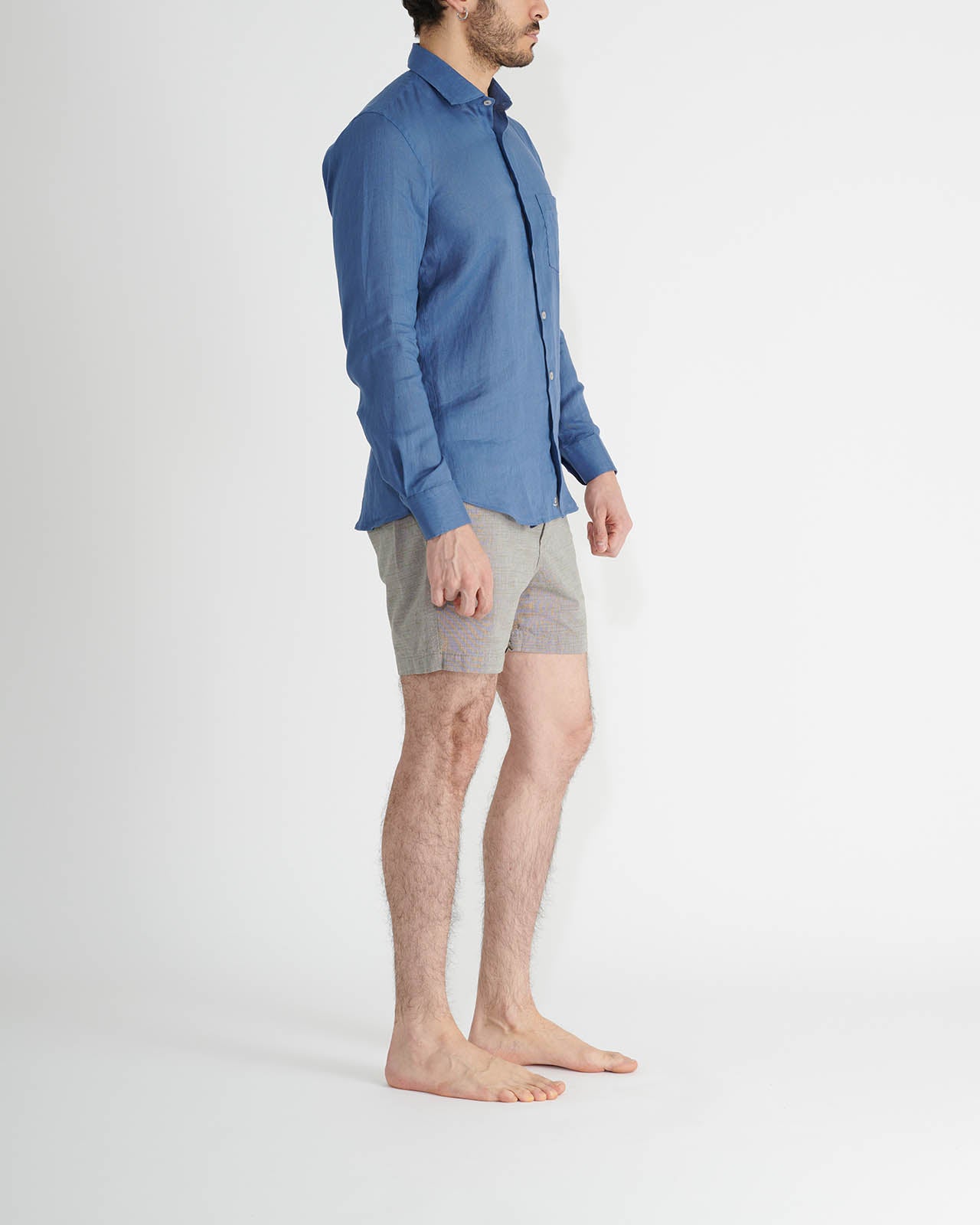 Camisa lisa de lino con mangas largas y botones. Corte regular fit y cuello camisero.