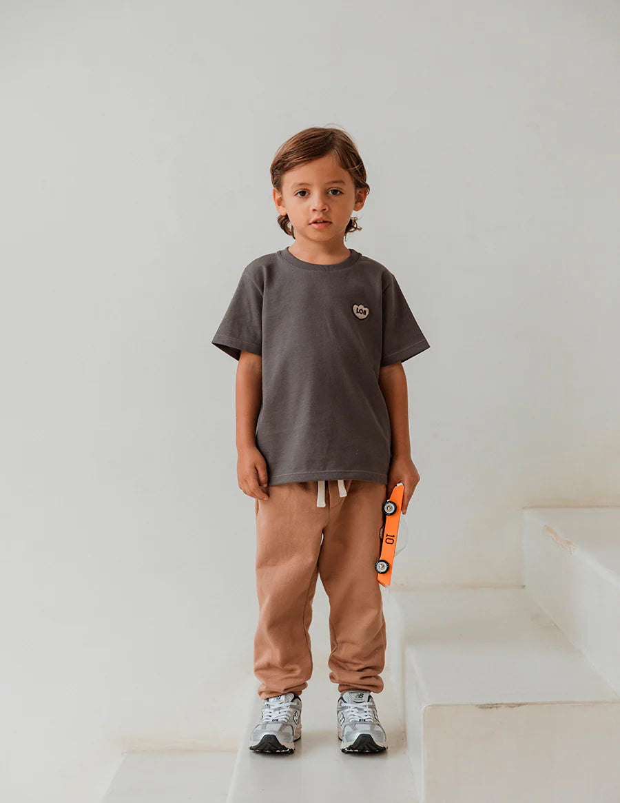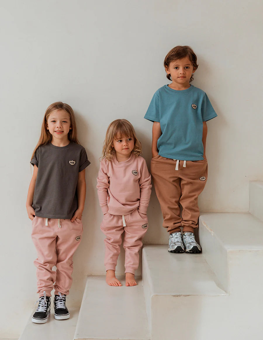 Camiseta infantil, para niñas y niños, con fit suelto, de manga corta, cuello redondo con rib y detalle de "LOB" bordado con textura súper suavecita en el pecho. Su color rosa es pálido, pero válido para usar con miles de cosas. Te aseguramos que una vez toques la tela te enamorarás de su suavidad y calidad. Y lo mejor! Es un tela de muy buen gramaje y por ser algodón 100% es fresquísima.