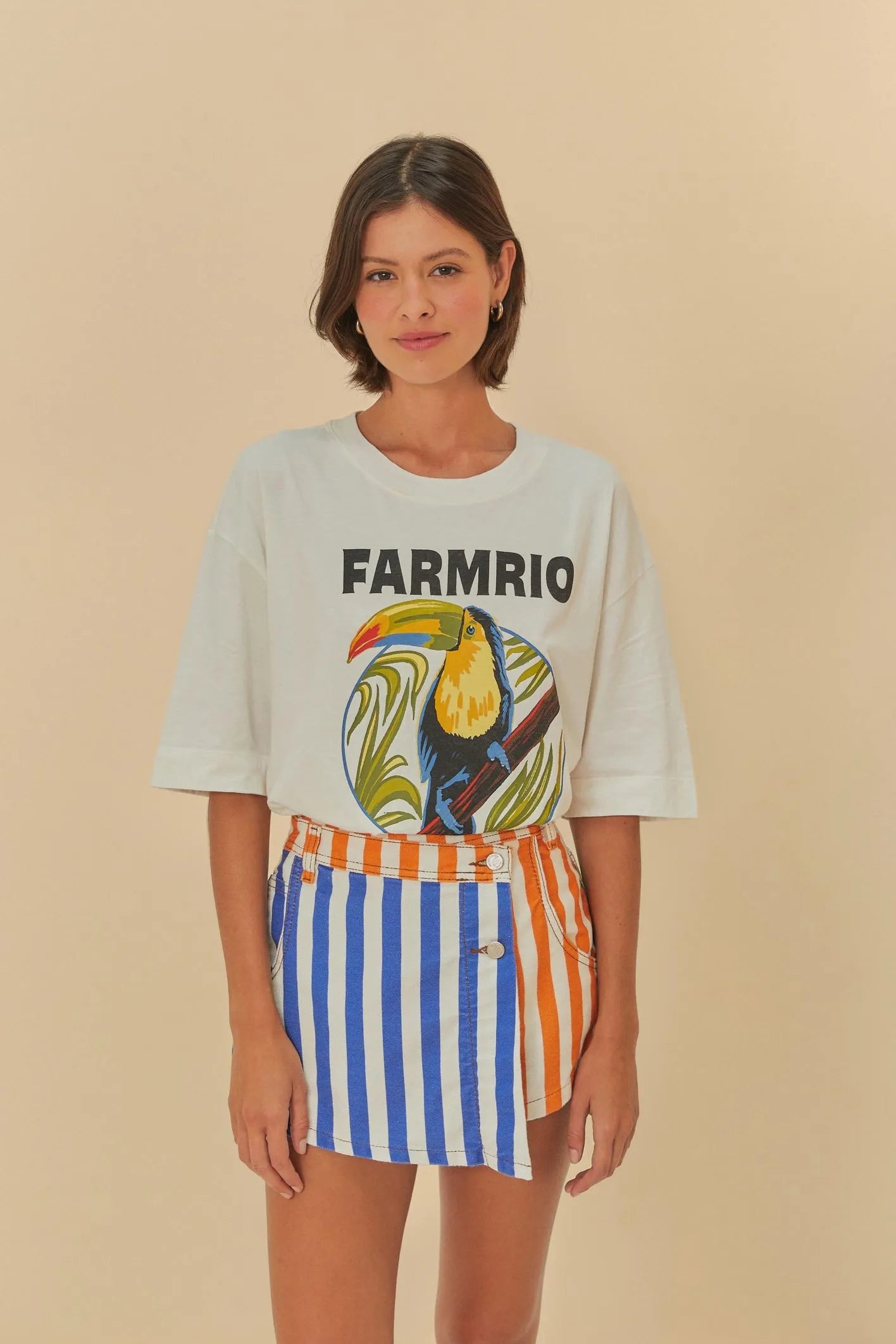 Camiseta oversize con estampado Tucano de Farm Rio. Confeccionada en tela ligera y cómoda, esta prenda presenta un corte holgado y mangas cortas para mayor libertad de movimiento. Ideal para ocasiones informales, combina a la perfección con jeans y faldas. Imprescindible para quienes buscan un estilo original.