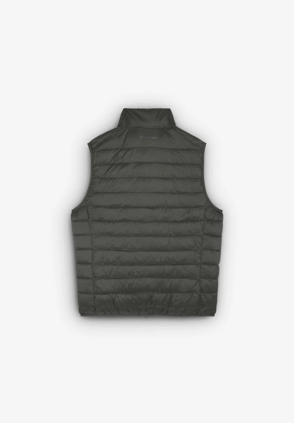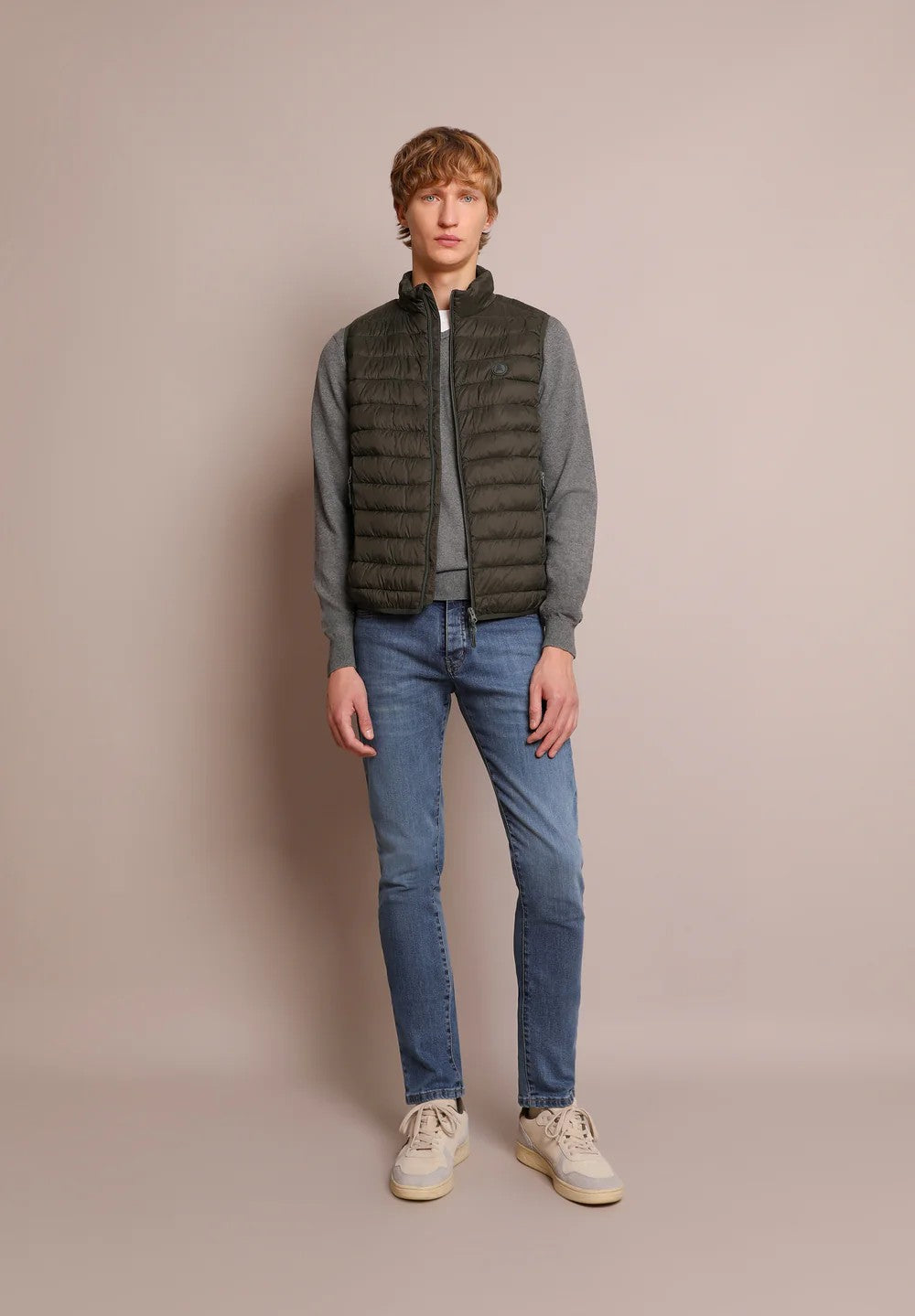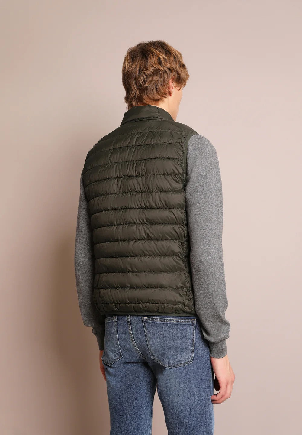 Chaleco acolchado con calavera. Confeccionado en poliéster reciclado. Corte Regular. Cuello alto. Cierre con cremallera. Bolsillos laterales.