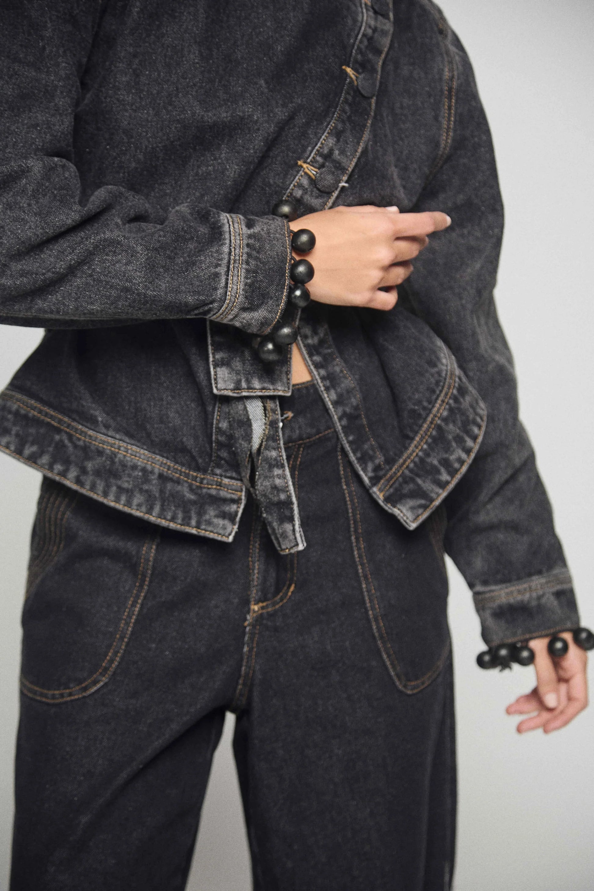 La chaqueta Celestia es una prenda destacada: una chaqueta estructurada y escultural que redefine la silueta clásica con un diseño moderno y los detalles característicos de Zierra Leona. Confeccionada en denim negro , combina resistencia, sofisticación y un atractivo atemporal.