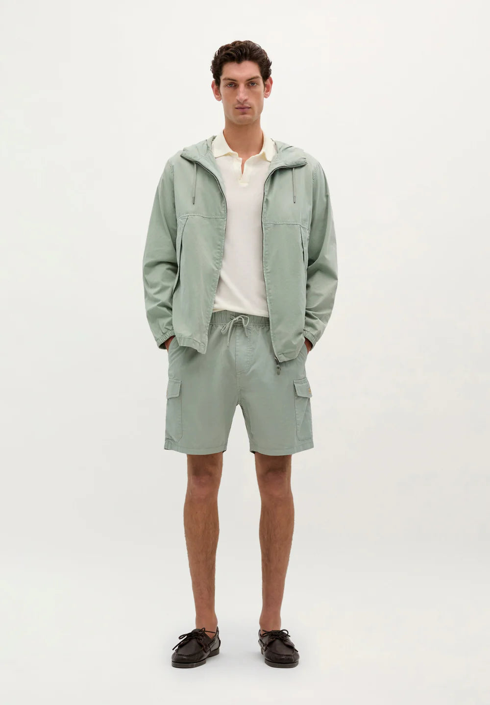 Chaqueta ligera confeccionada en 100% algodón BCI. Regular fit, cuello con capucha ajustable con cordón y cierre con cremallera. Manga larga terminada en elástico y bolsillos laterales con tapeta y snap.