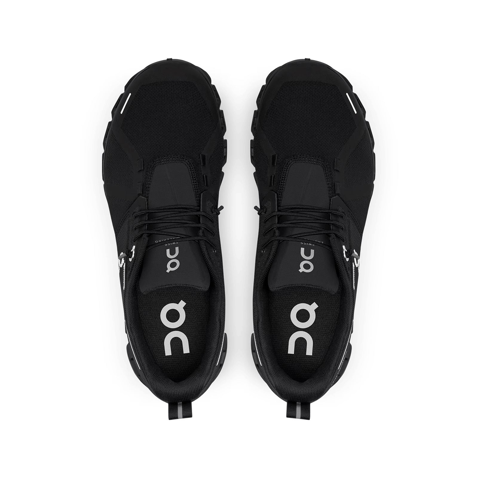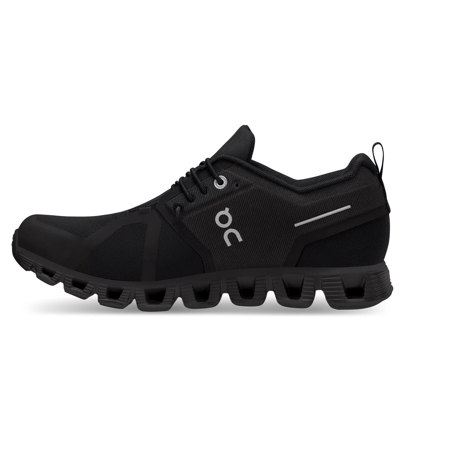 On Running Cloud 5 Waterproof All Black es un zapato para correr que viene en una combinación de colores completamente negro.