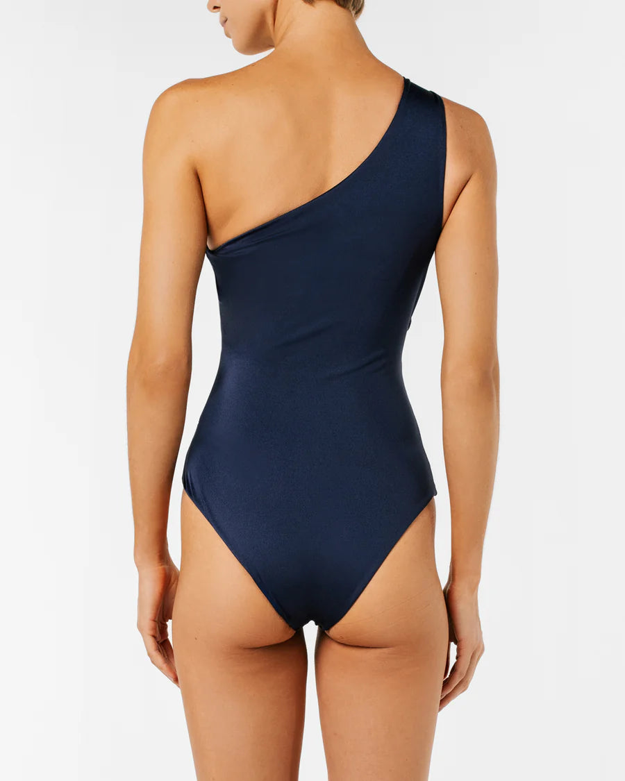 Bañador de una pieza con un solo hombro, detalles drapeados y una silueta perfecta, ideal para la playa o para incorporar a tu vestuario diario.