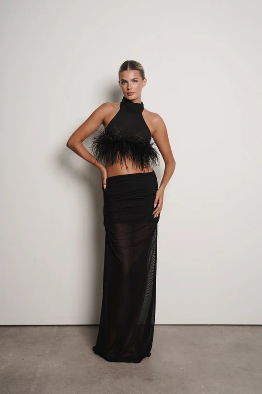 Falda de malla con una combinación atrevida, femenina y glamurosa. Perfecta para acaparar todas las miradas, esta pieza define la confianza y el estilo.