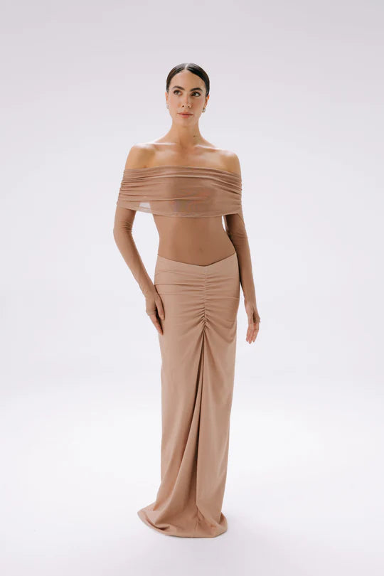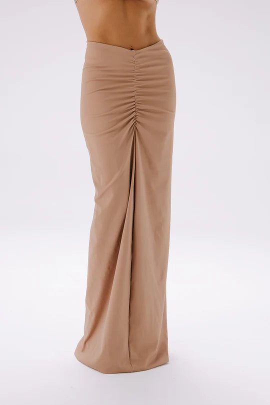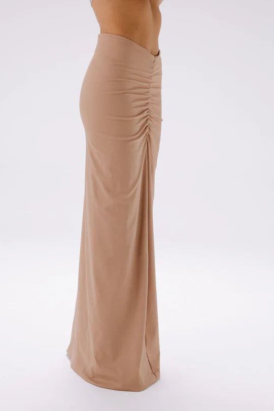 La falda que redefine la elegancia natural. Su silueta fluida y el detalle de la cinturilla fruncida crean una silueta favorecedora que realza la figura. Confeccionada en un tejido suave y adaptable, esta prenda es perfecta para looks refinados, tanto de día como de noche.