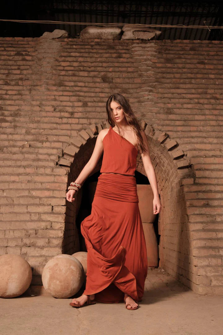 Esta falda maxi de corte largo presenta una cintura ancha con fruncido y una caída fluida que le da una silueta relajada.