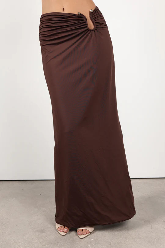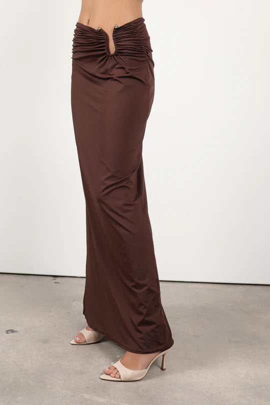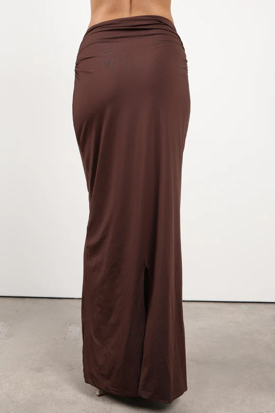 Esta falda larga presenta un fruncido estratégico que realza la silueta y una abertura en la espalda que aporta comodidad y un toque de sensualidad. Versátil y favorecedora, se convierte en una prenda esencial de tu armario.