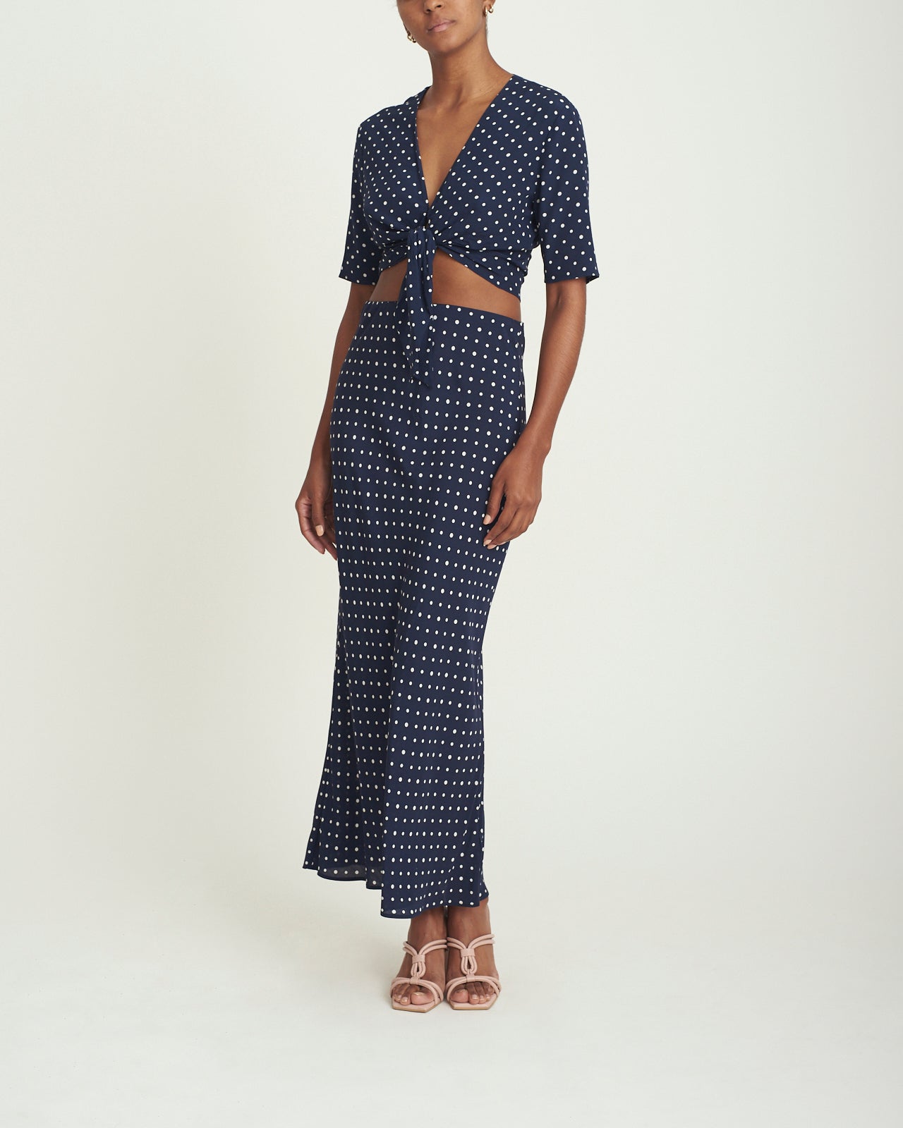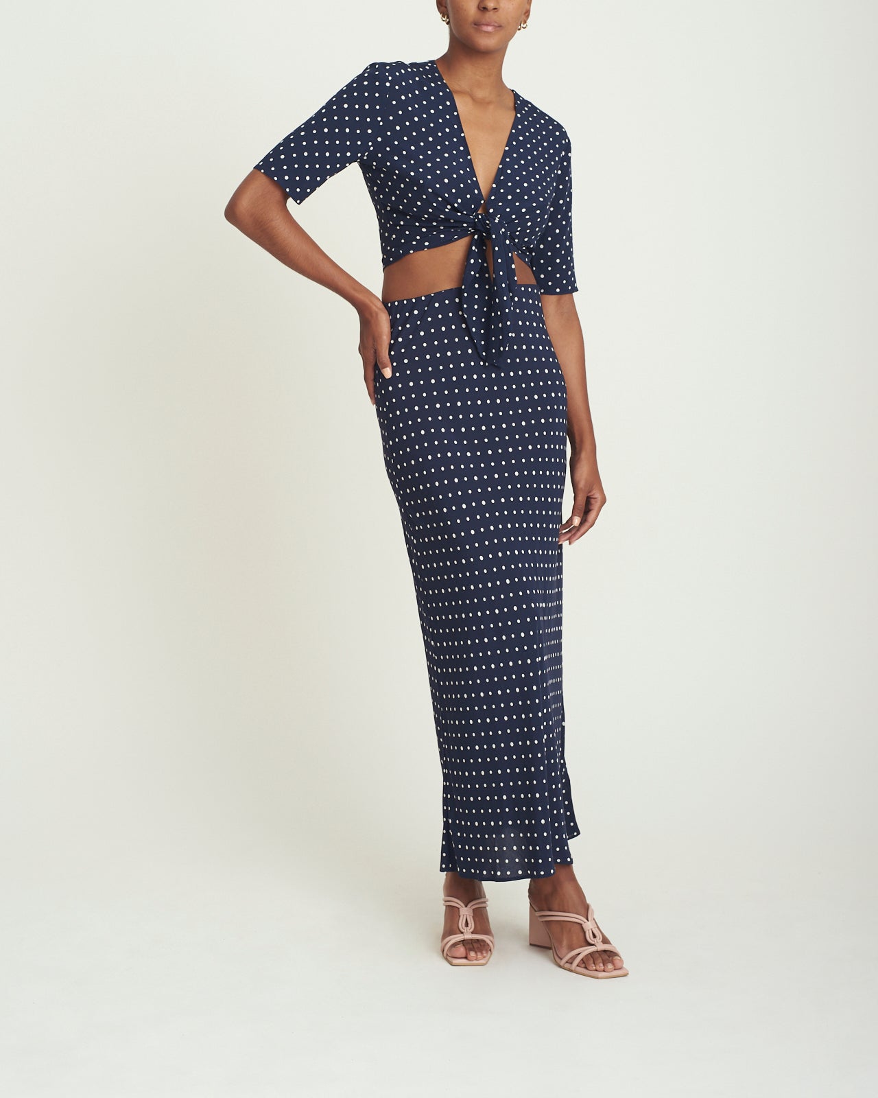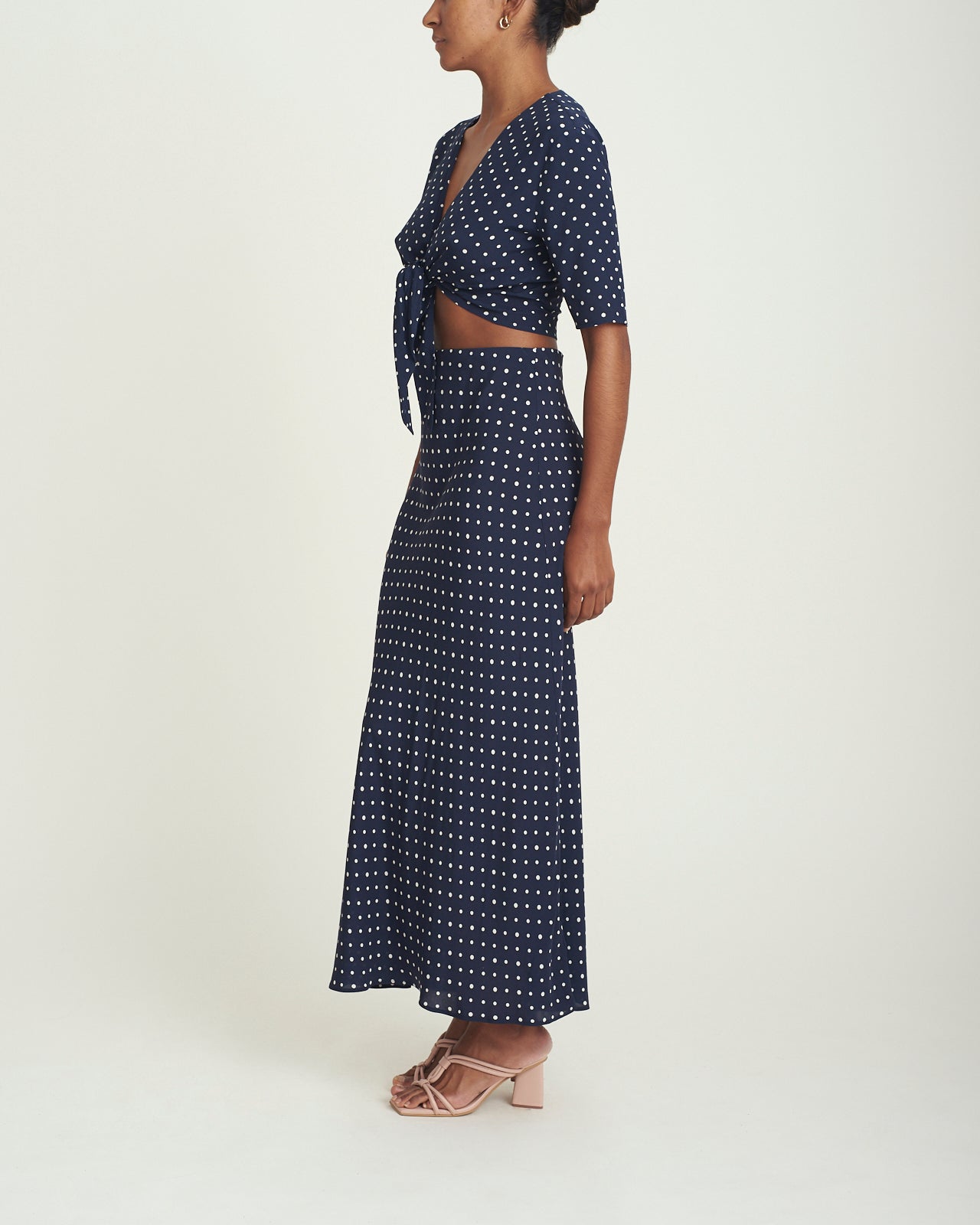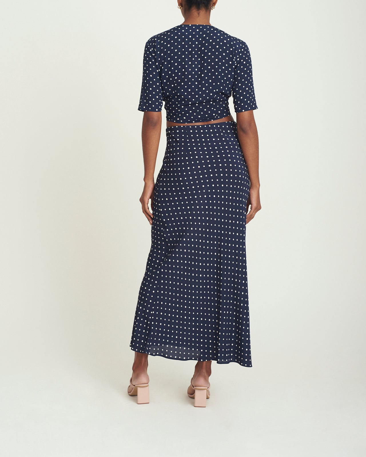 Completa tu nuevo look favorito con la falda Getaway los lunares pequeños agregan un poco de fantasía a la falda midi azul marino. (Incluso si salir de casa significa cenar en la calle). Confeccionado con un crepé de rayón fluido que también es respetuoso con el medio ambiente.