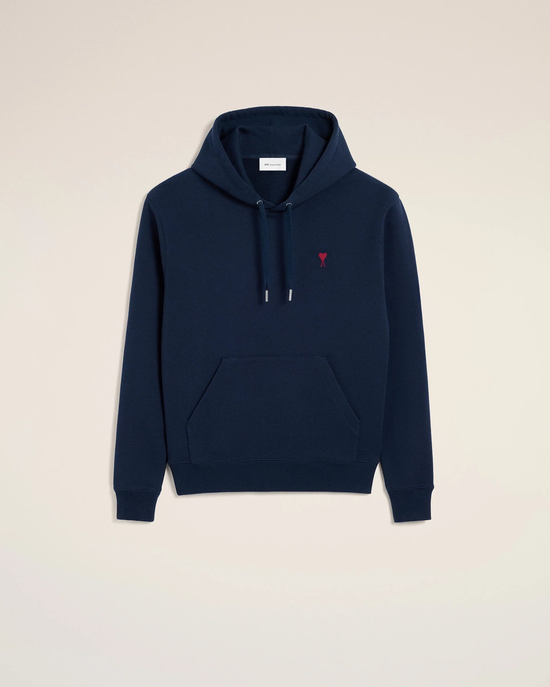 Sudadera Ami de Coeur en felpa de algodón orgánico. Producto unisex. Corte clásico. Bordado rojo Ami de Coeur en el pecho. Bordado tonal "ami" bajo el cuello trasero. Tapones metálicos color níquel y ojales grabados.