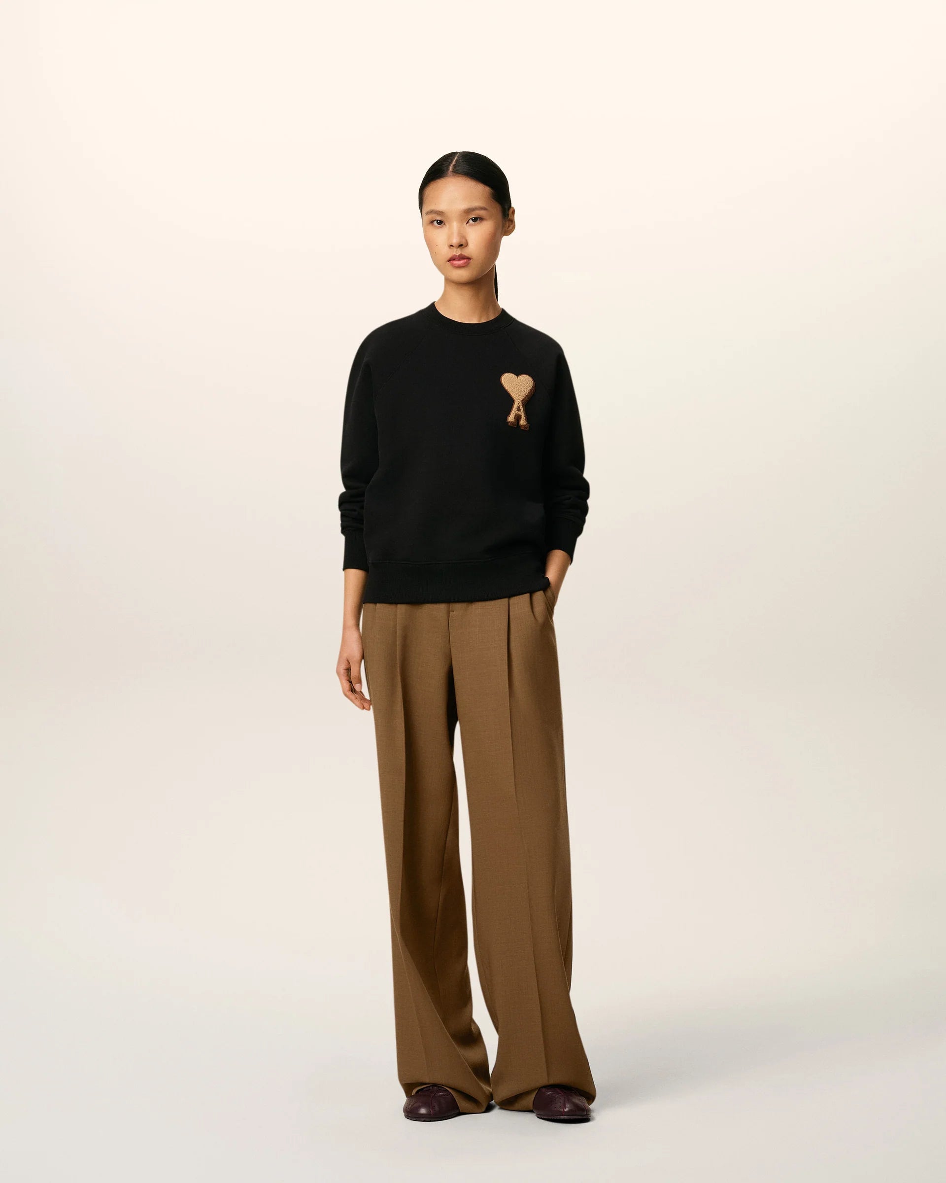 Sudadera Ami de Cœur de felpa de algodón de rizo grueso. Artículo unisex. Corte boxy. Manga raglán. Parche de rizo Ami de Cœur en contraste. Bordado "ami" tono sobre tono bajo el cuello de la parte trasera.