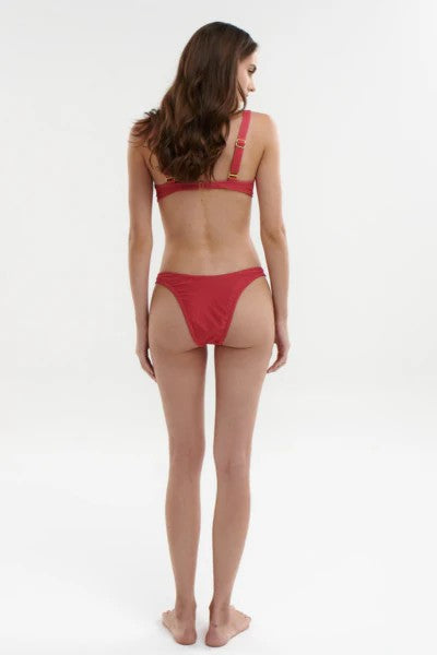 Bottom con corte descarado en tela brillante.