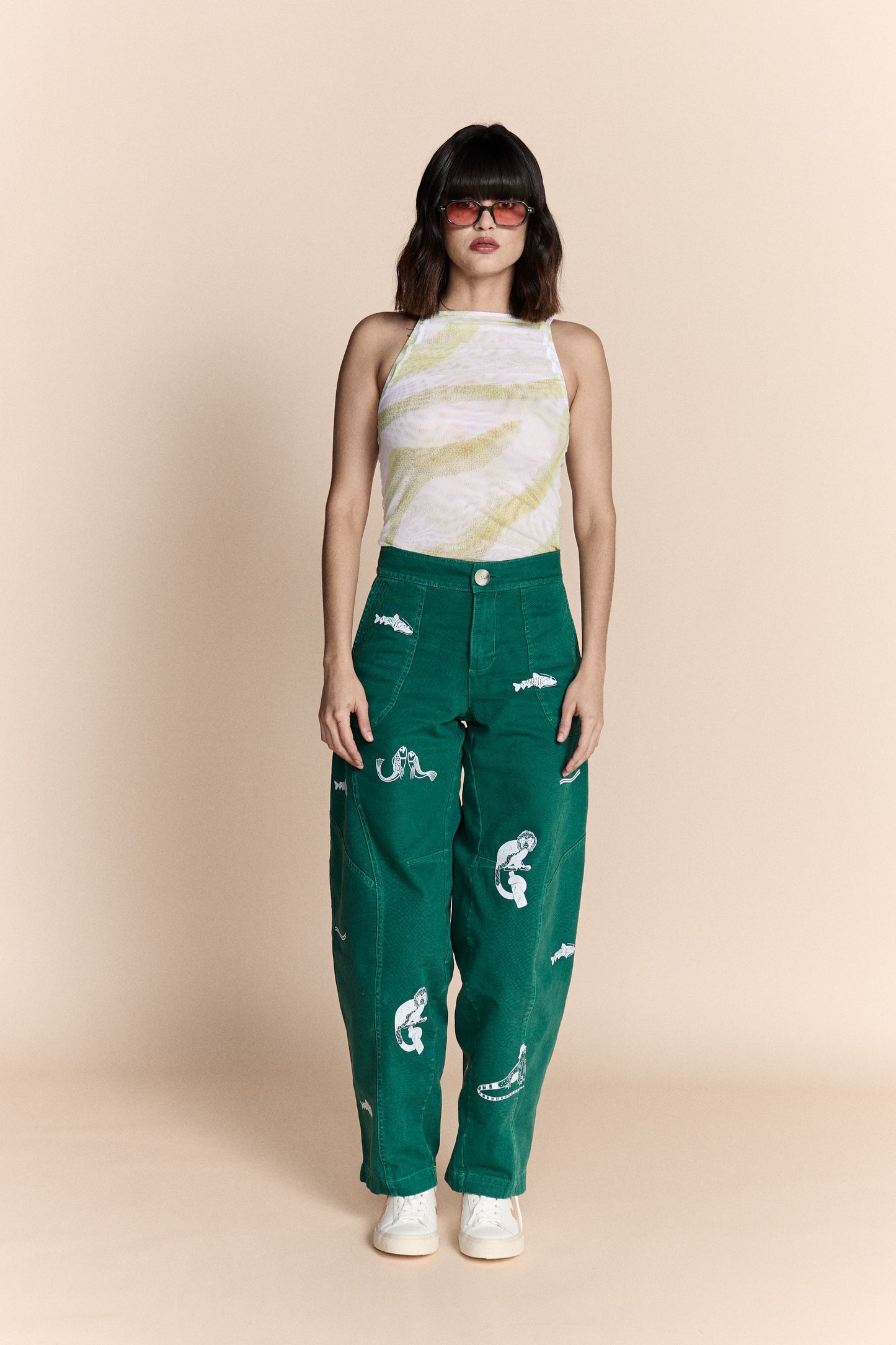 Tiene bolsillos frontales y traseros, y un fit semi balloon que le da estructura pero también movimiento.