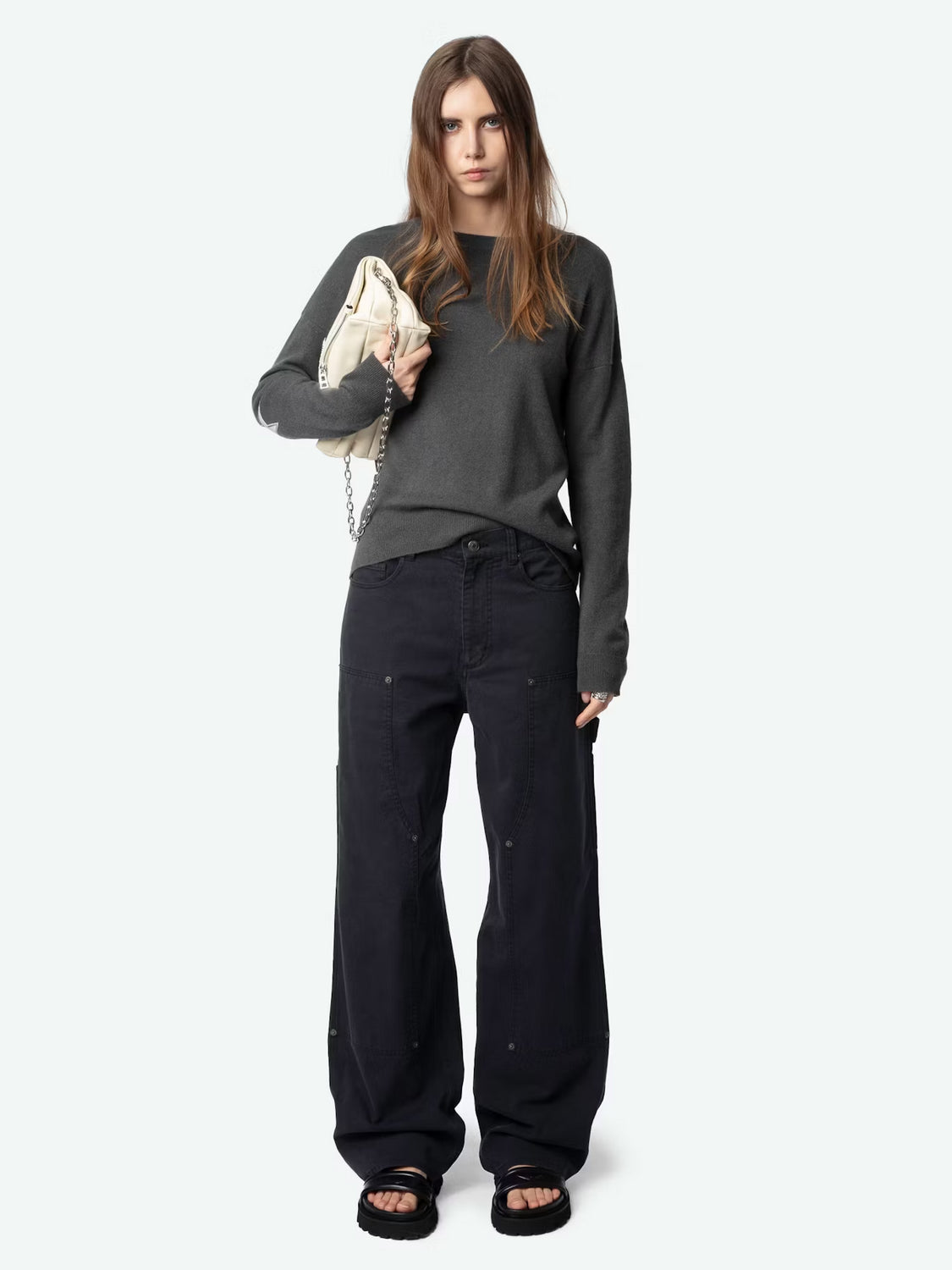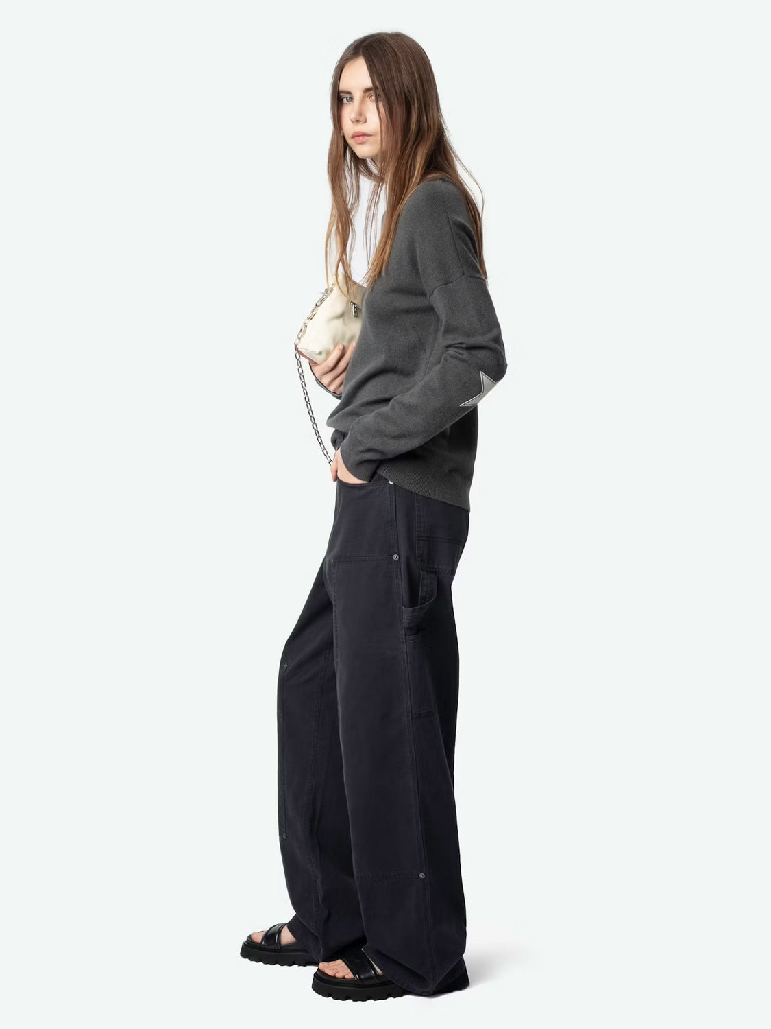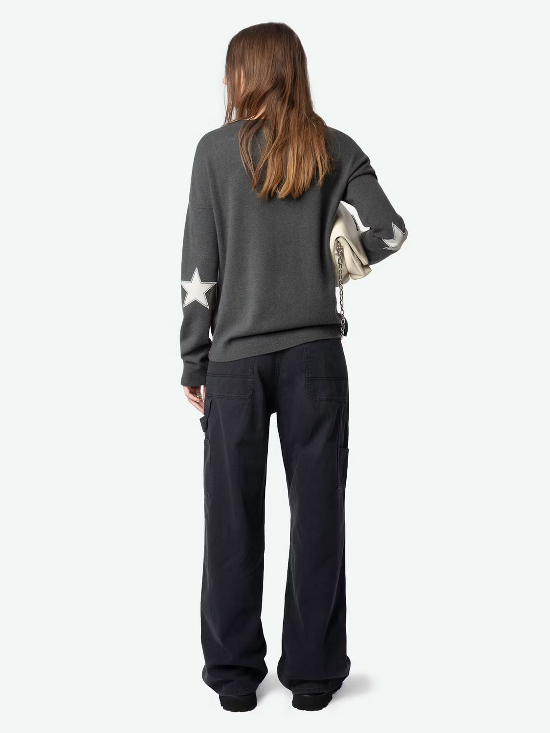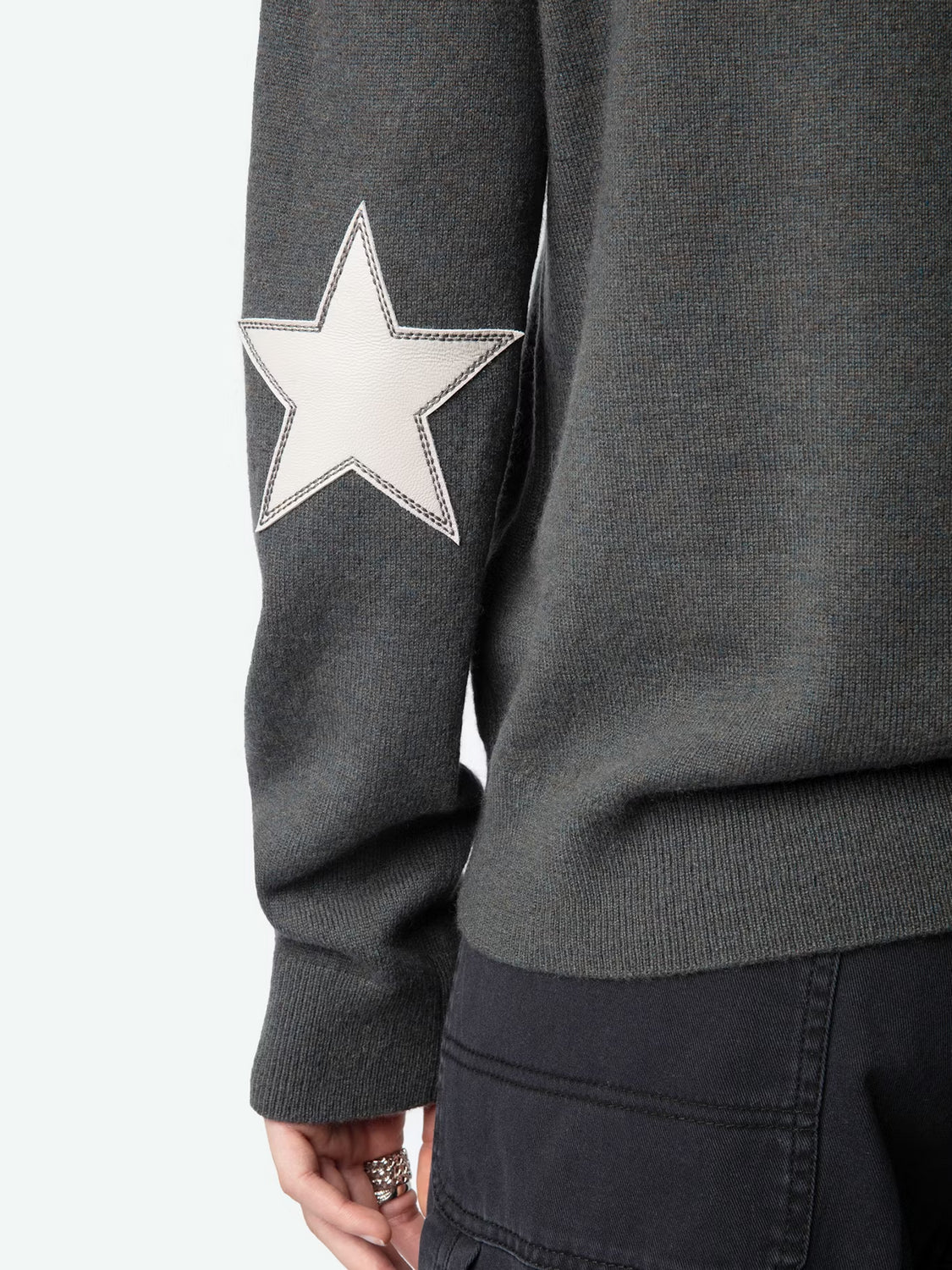 Jersey de 100% cachemir. Parches de estrellas en los codos. Cuello redondo. Mangas largas y bordes acanalados.
