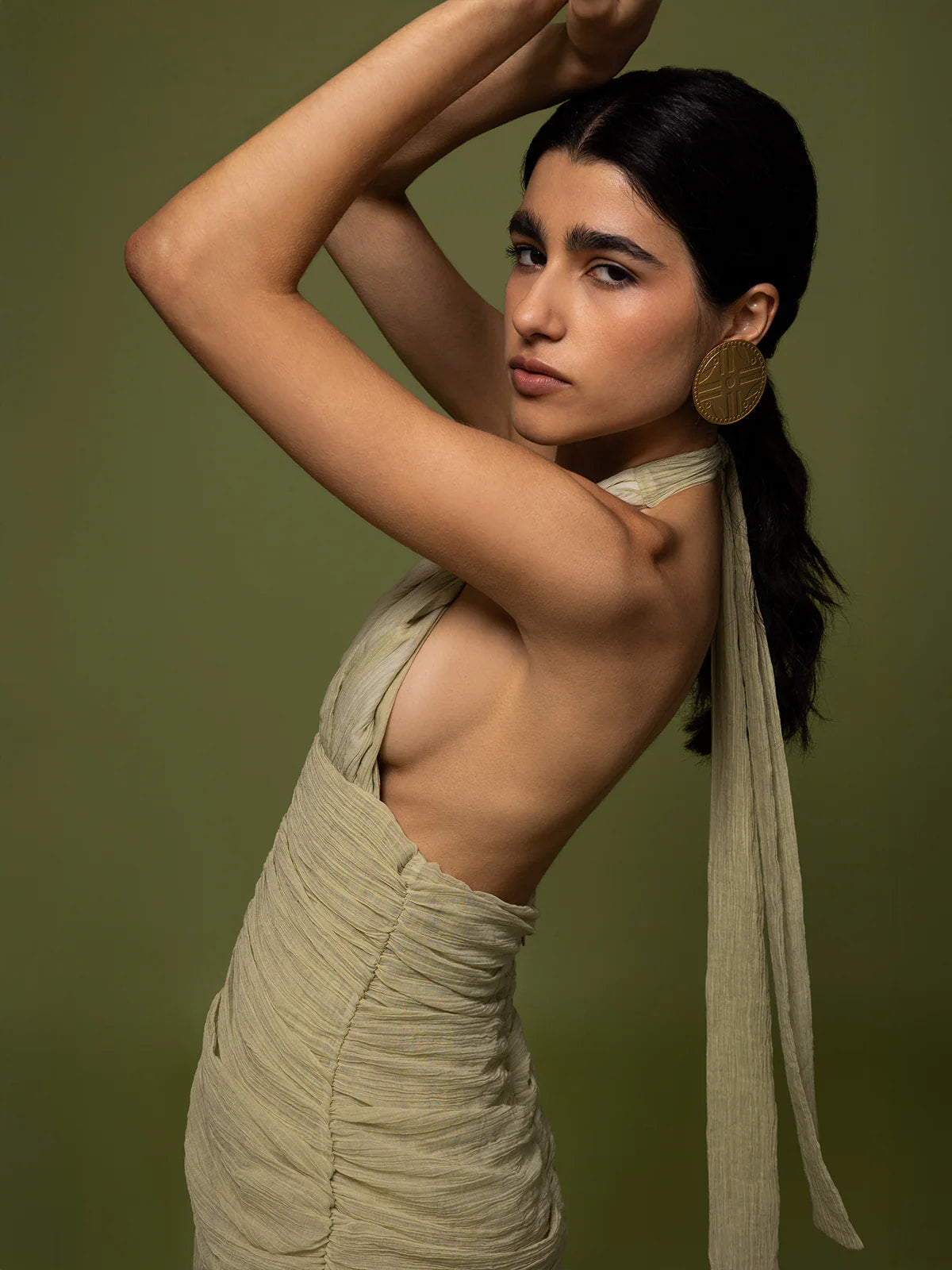 The Agua de Rio dress, un homenaje a la suavidad en estado puro. Confeccionado en una tela plisada, ligera como una pluma, que le da un aspecto suave y aireado. En el busto, un detalle trenzado a mano y de acabado crudo aporta textura y fuerza, en referencia a los nudos y la belleza utilitaria de la vida rural.