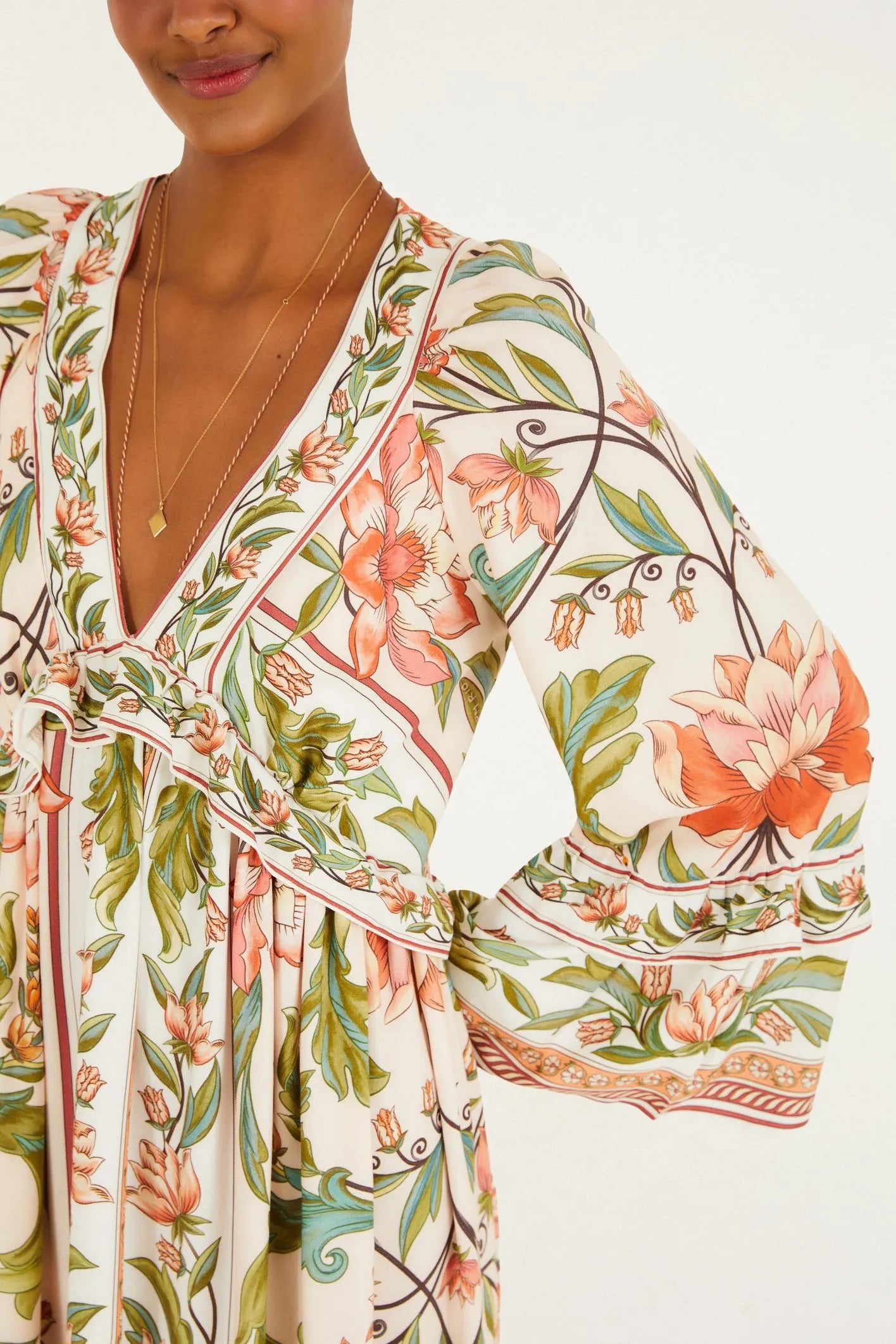 Vestido largo estampado Natalia. Con escote en V y manga larga, es perfecto para looks casuales y ocasiones especiales. Su diseño fluido aporta ligereza, y los detalles de lazo en las mangas y el busto le dan un toque de encanto y originalidad. Una opción ideal para que tu verano sea aún más especial.