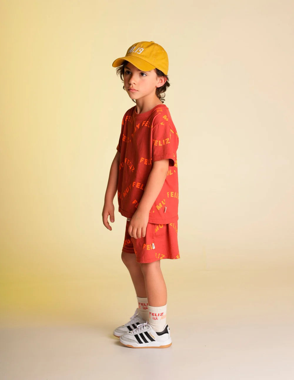 Medias para niñas y niños, súper suaves y elásticas con tubo acanalado y parte inferior acolchada. En color marfil y con detalle de texto vinotinto que dice "Feliz" y una carita sonriente, alusivos a nuestra colaboración de Lobster Mini + Felicidad Bakery. Efecto degradé en diferentes colores en empeine. Hecho éticamente en Colombia. Composición: 63% Algodón peinado 36% Poliamida 1% Elastano