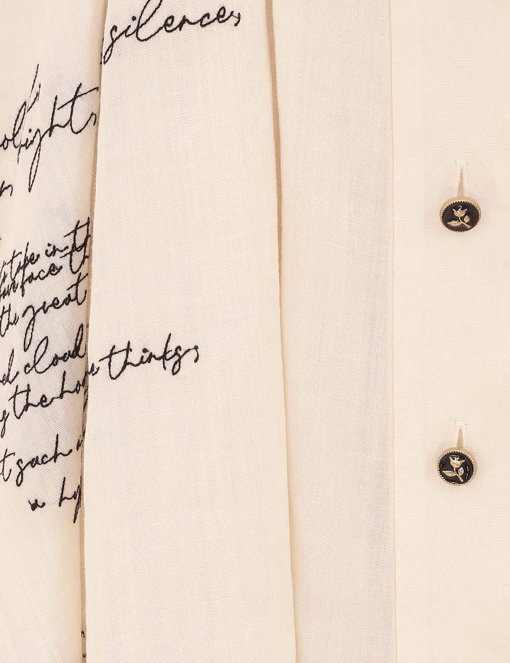Vestido camisero bordado Dream en color crema Poem de nuestra Colección Otoño 2025, Hypnotic. Vestido midi de ramio con cuello clásico, cinturón extraíble, manga larga con puños ajustados y acabado de botones en la parte delantera.