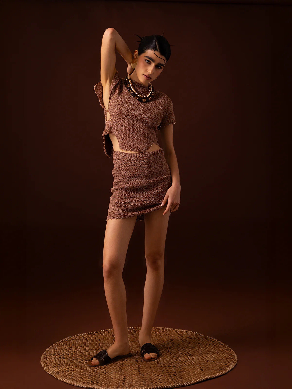 The Laza Skirt, toma una silueta clásica tipo tubo y la eleva mediante una confección completamente tejida a mano, transformando un básico de armario en una pieza de artesanía vestible. Diseñada para ajustarse alto en la cintura y caer suavemente por las caderas, la falda Laza se mueve con naturalidad entre la comodida y la elegancia.