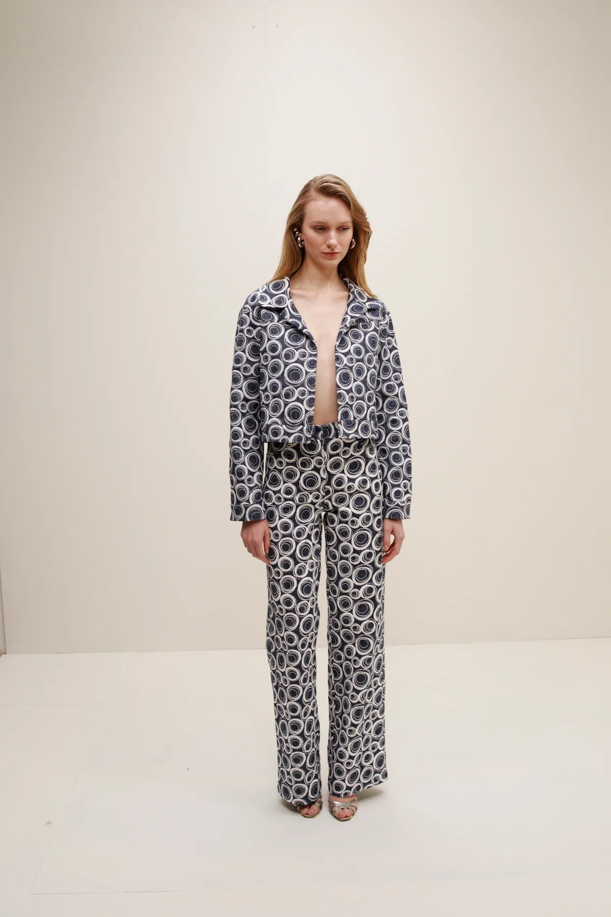 Los pantalones rectos Baccio combinan una elegancia sencilla con un estampado gráfico llamativo, ofreciendo un corte elegante y entallado que alarga la silueta. Una prenda con un toque de estilo atemporal.