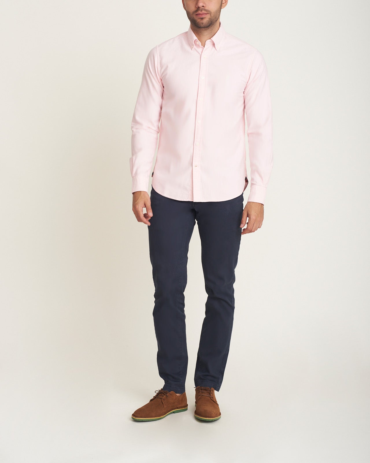 Un pantalón chino con un estilo único, corte slim fit, cierre mediante cremallera oculta por tapeta y botón.