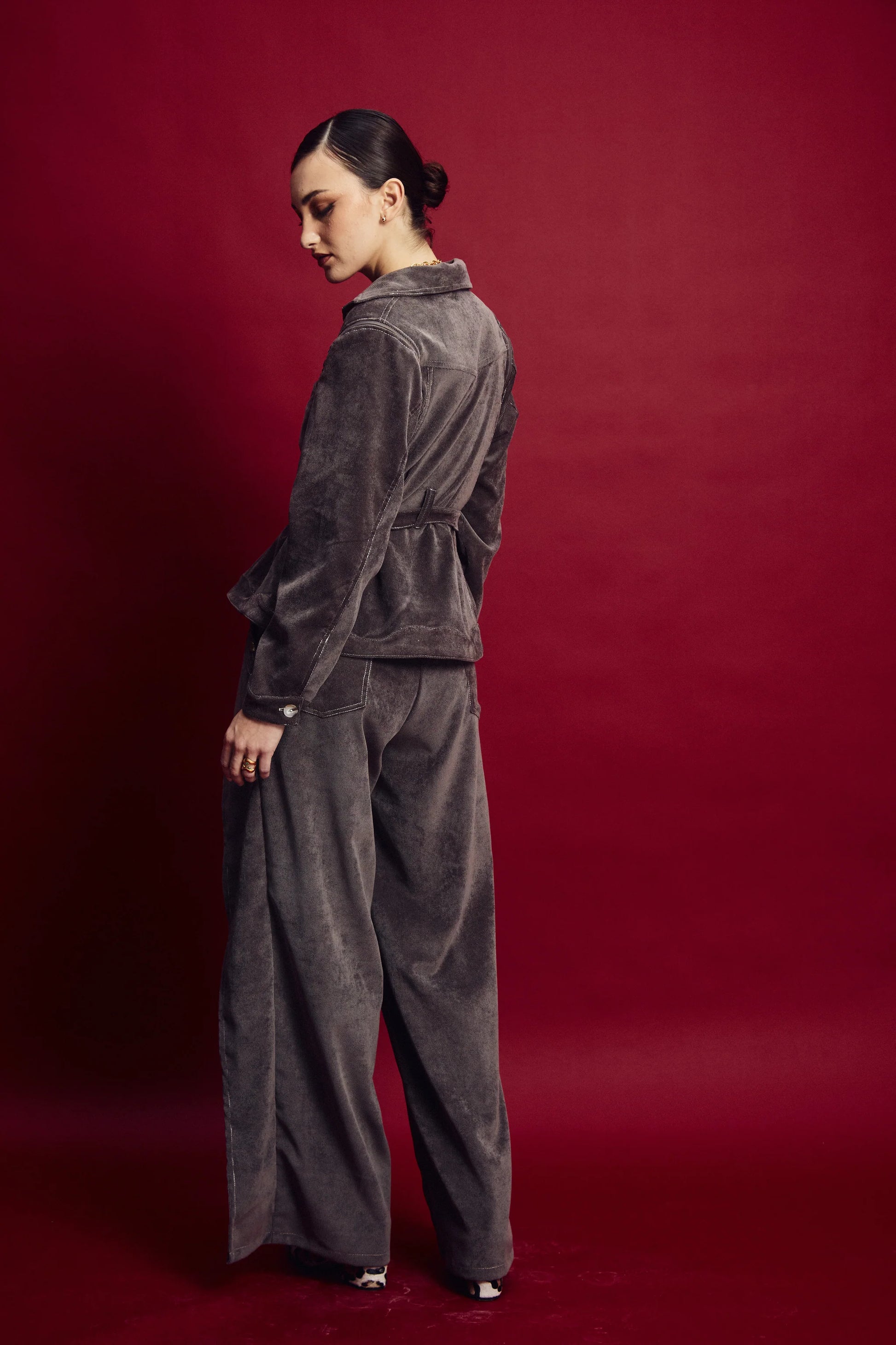 El diseño presenta sutiles aberturas en las piernas que crean movimiento y fluidez sin comprometer la cobertura. Con bolsillos delanteros y traseros para mayor funcionalidad, su detalle más destacado es el cinturón inspirado en una serpiente , con líneas onduladas que evocan la temática de la colección: un accesorio y una pieza destacada en sí misma.