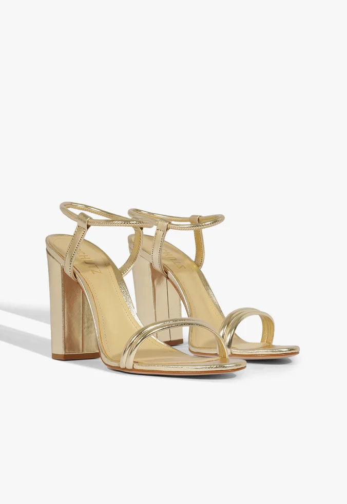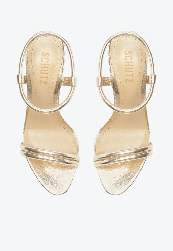 Este modelo, con sus delicadas tiras, adquiere un toque extra de sofisticación gracias a su tacón alto y cuadrado, sin mencionar el elegante acabado metálico. ¡Esta sandalia dorada demuestra que es posible lucir un look de fiesta sin renunciar a la comodidad!