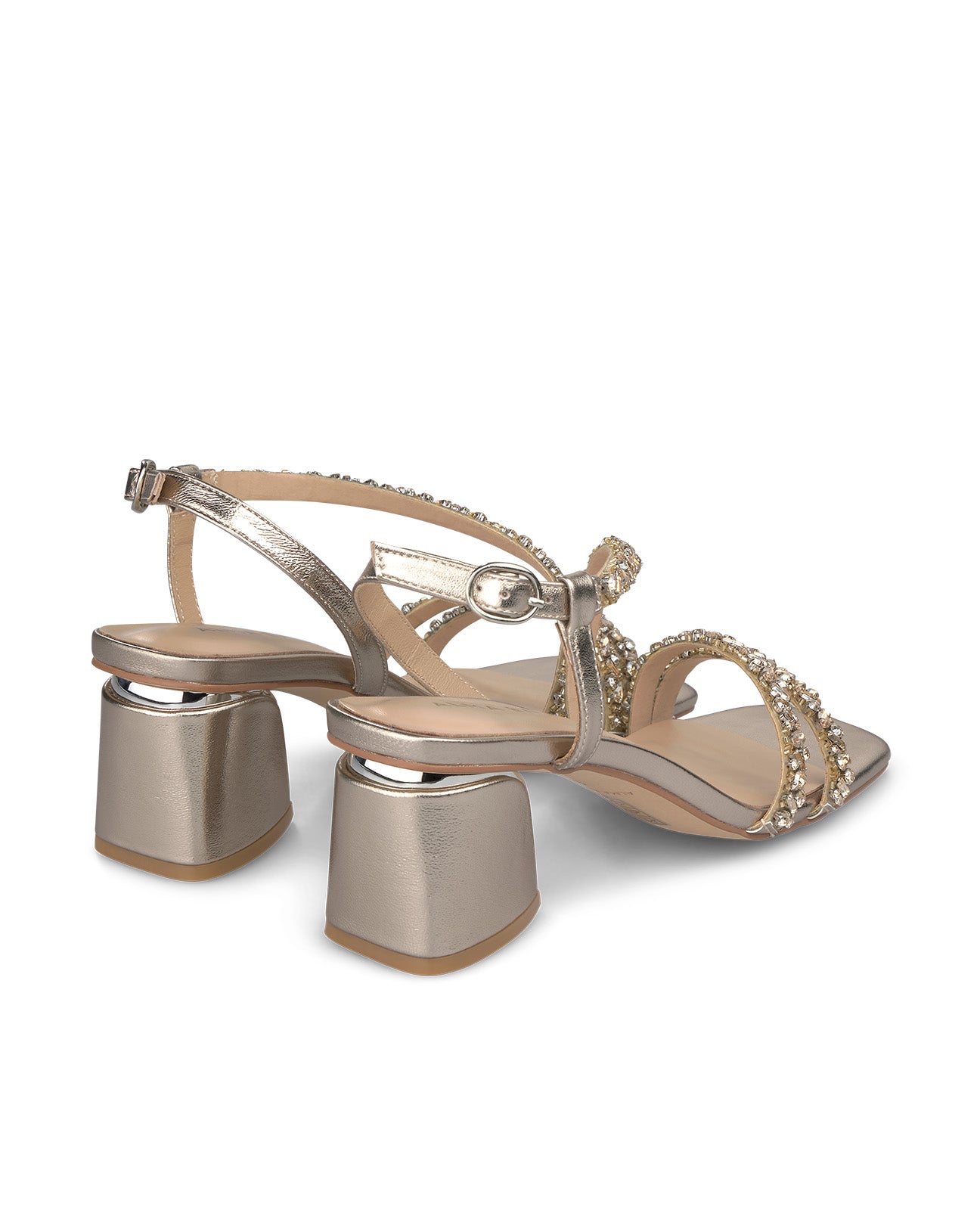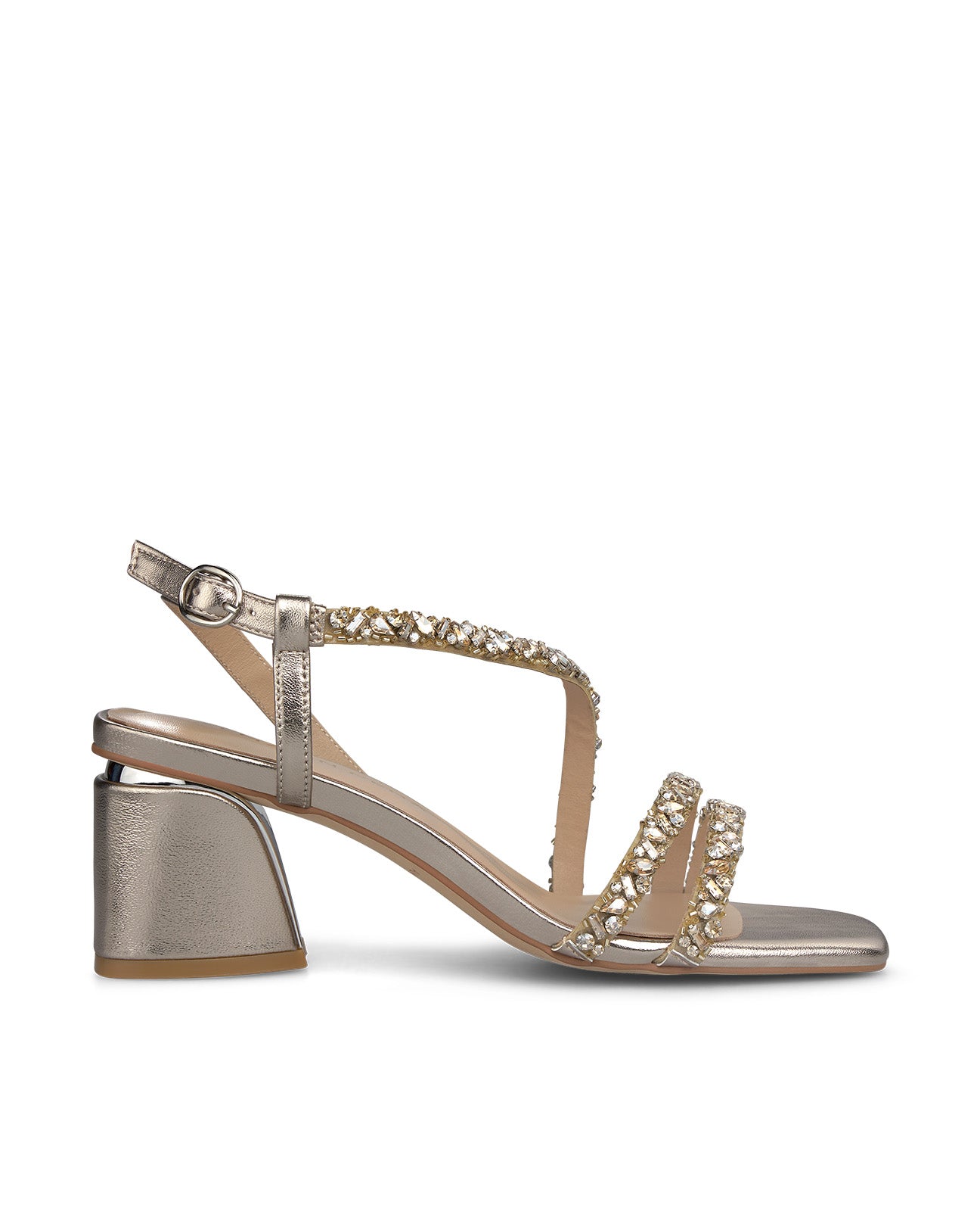 Sandalias de piel la parte superior está adornada con cristales. Cierre de hebilla.